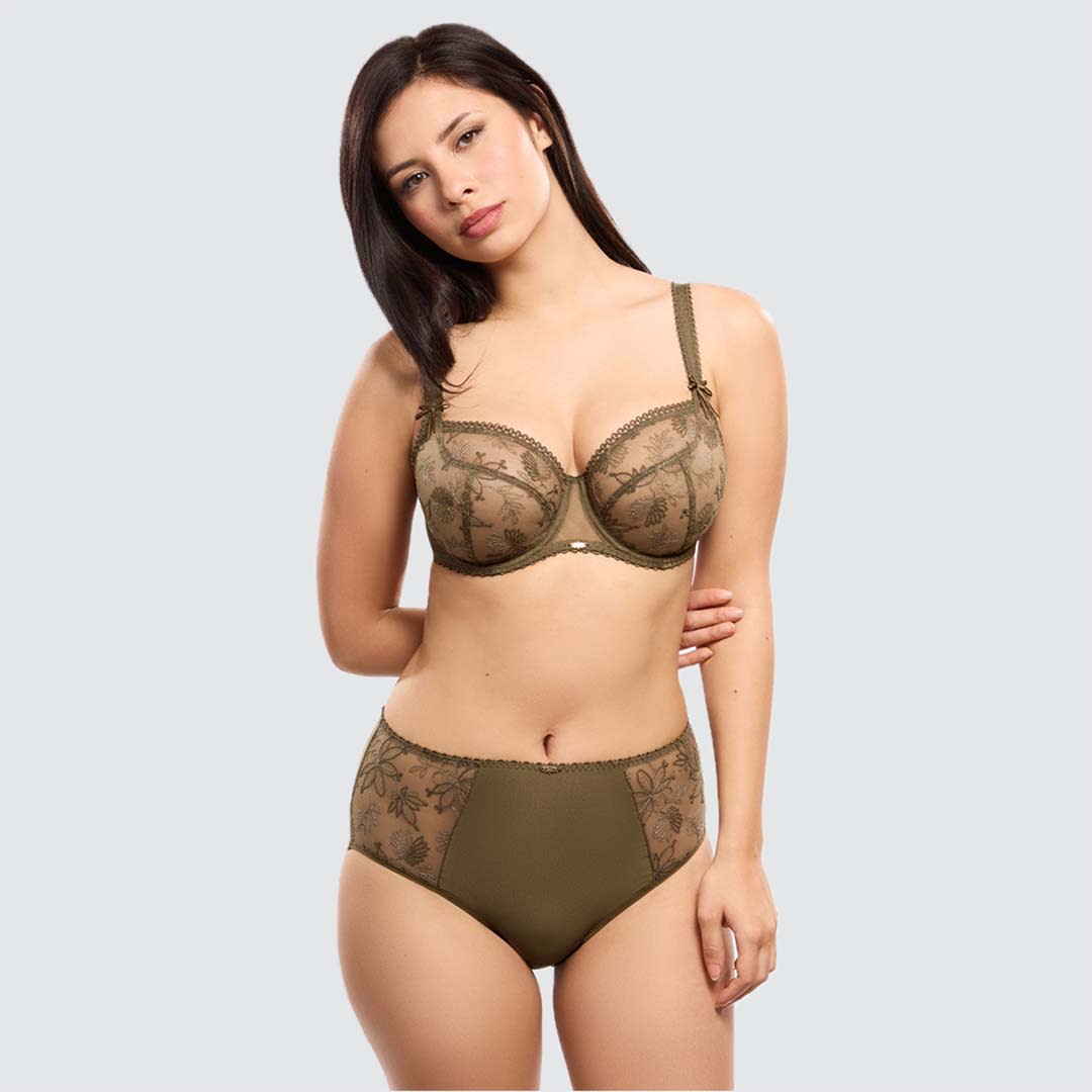 The Alix low low-necked underwired Bra features a demi-cup shape that enhances the neckline while offering gentle support. Non-padded cups provide a natural silhouette, complemented by decorative adjustable straps and a delicate jewel detail for an elegant finishing touch.