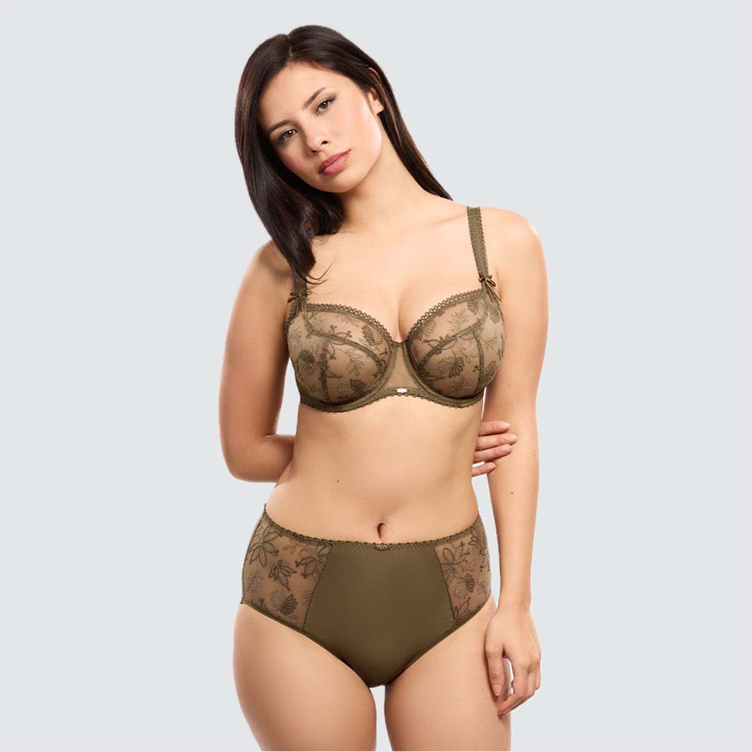 The Alix Panties are high-waisted full briefs that offer a flattering and comfortable fit with a soft fabric front and back, accented by delicate embroidered inserts at the sides. The peachy-soft opaque mesh back is elastic-free, ensuring an invisible finish under clothing. A decorative jewel at the front adds a refined, feminine touch to this beautifully crafted design.