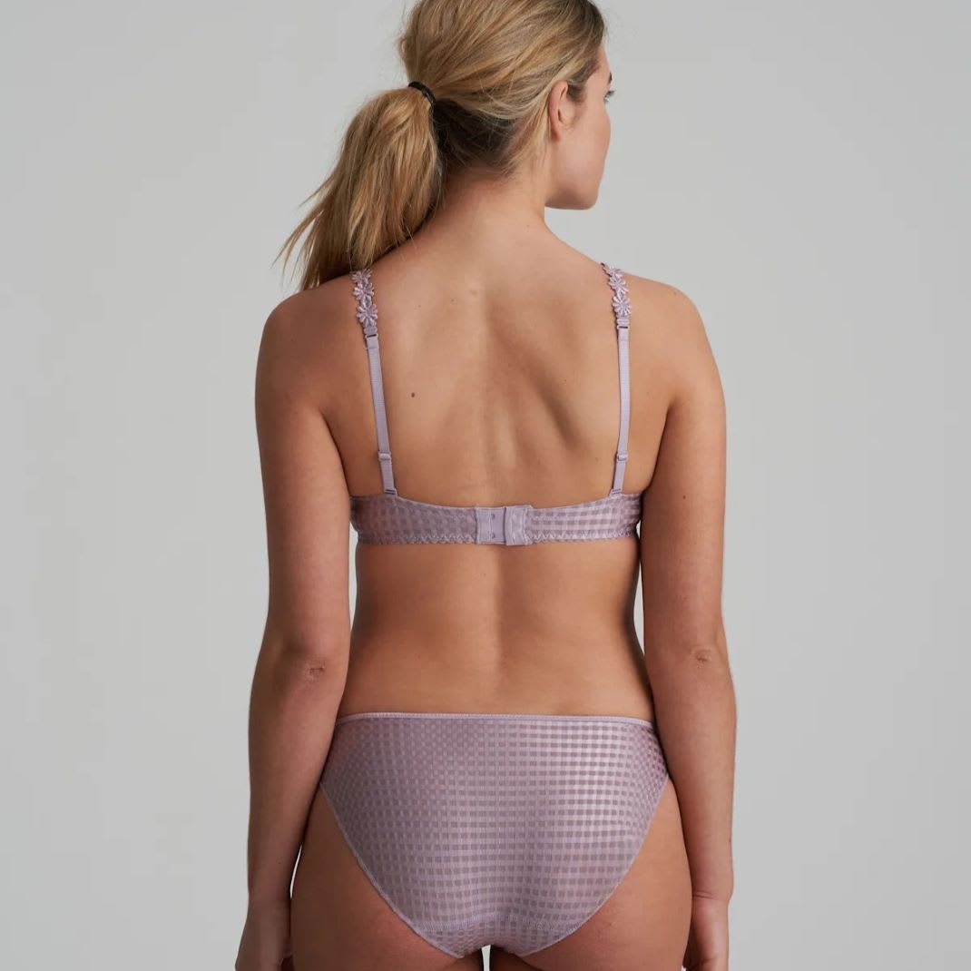 A subtle checkered pattern adorns the Avero Rio Brief, finished with pretty floral embroidery at the centre front. The rear offers great coverage and a comfortable fit. This perfect everyday brief has a thin waistband and trim for invisibility under clothing