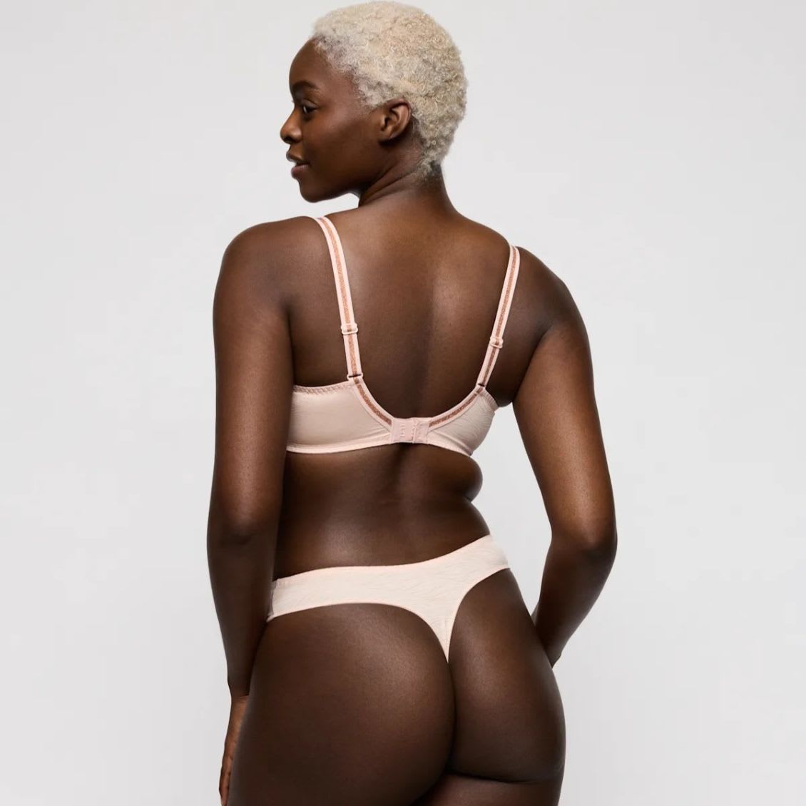 Comfy padded wired bra. Stylish non-transparent design. Stylish straps to hide or show. In pale pink with glitter details.