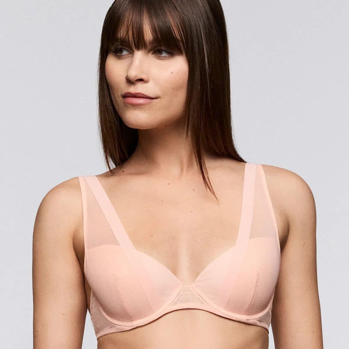 All-day comfort with just the right amount of see-through. Padded wired bra with cleavage. Non-transparent design. Cross the shoulder straps at the back. Mesh straps for a unique effect.