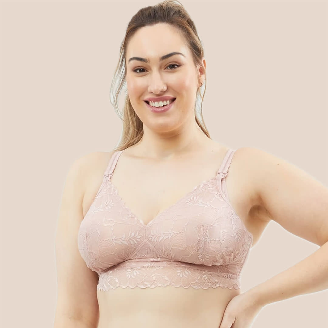 A wire-free Chantilly D-F Maternity & Nursing Bralette featuring soft French-inspired lace, easy drop-down cups, and flexible, supportive design for comfort and growth during motherhood.