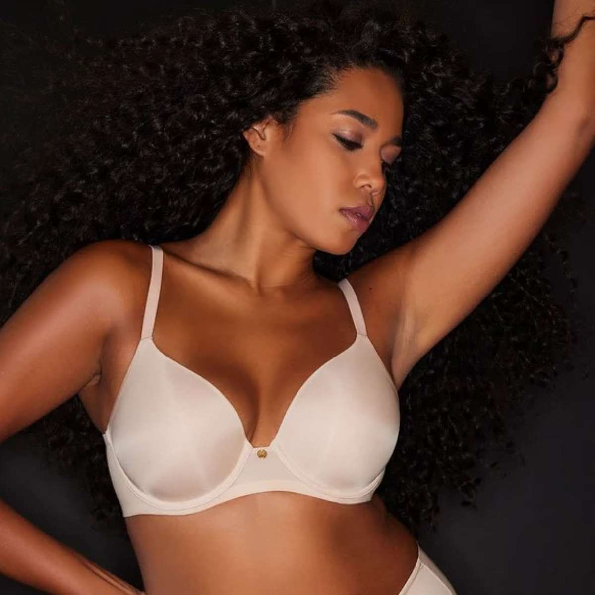 Smoothing reimagined, this ultra-light T-shirt bra delivers signature Natori comfort with full-coverage support like no other. Crafted from lightweight stretch fabric, it smooths and supports without any dig-in, while the soft full-coverage stretch foam cups feel gentle against the skin. A higher center provides added containment, complemented by built-up backs designed to shape and smooth for an invisible look under clothing. Finished with Natori’s signature gold crest and adjustable straps with gold hardware, this style is both refined and functional. Made from OEKO-TEX® Standard 100 certified materials (#23.HUS.17957, tested by HOHENSTEIN HTTI), it features a blend of nylon and elastane with a polyester cup lining. For best results, hand wash and line dry.