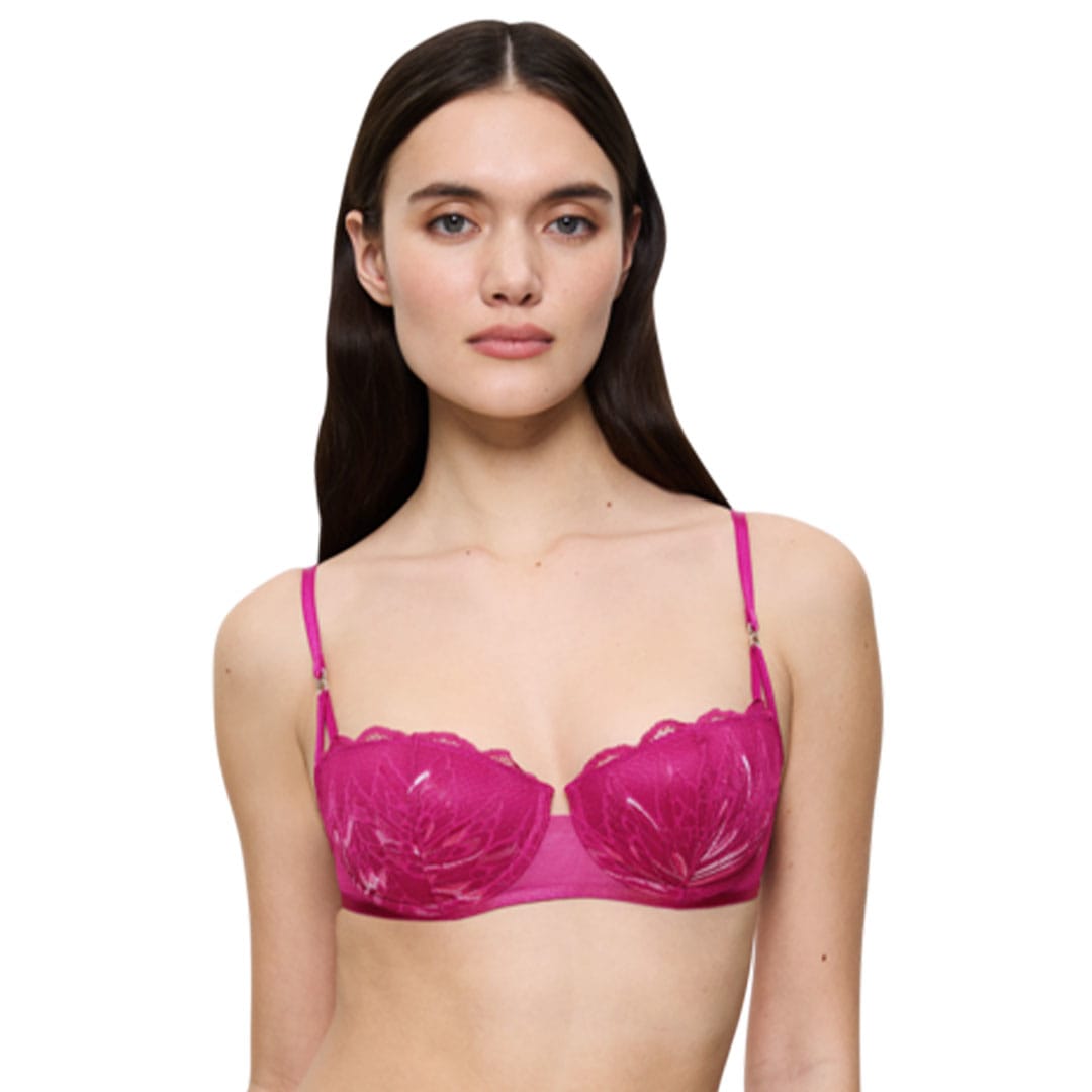 The Crazy Stupid Love Half Cup Bra features flexible comfort wires, feather-soft cups, elegant double-ring straps, and fancy dotted mesh wings for a lightweight yet striking look.