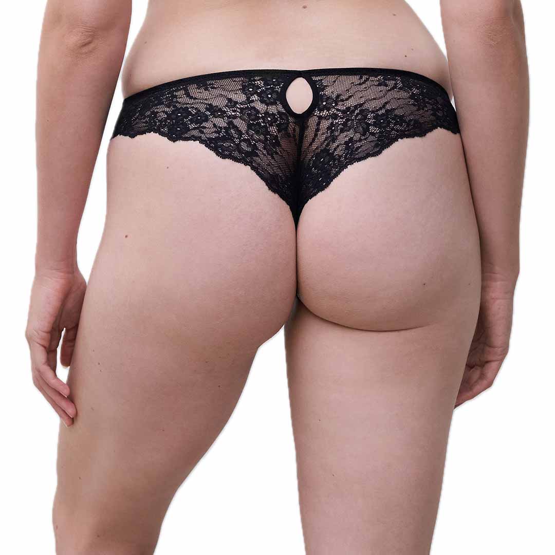 The Crush Tanga Brief is an everyday thong-style bottom combining floral lace, opaque knit, and elastic tulle with a semi-sheer finish throughout. It features a 100% GOTS-certified cotton gusset, is OEKO-TEX® Standard 100 certified, and is designed in France.