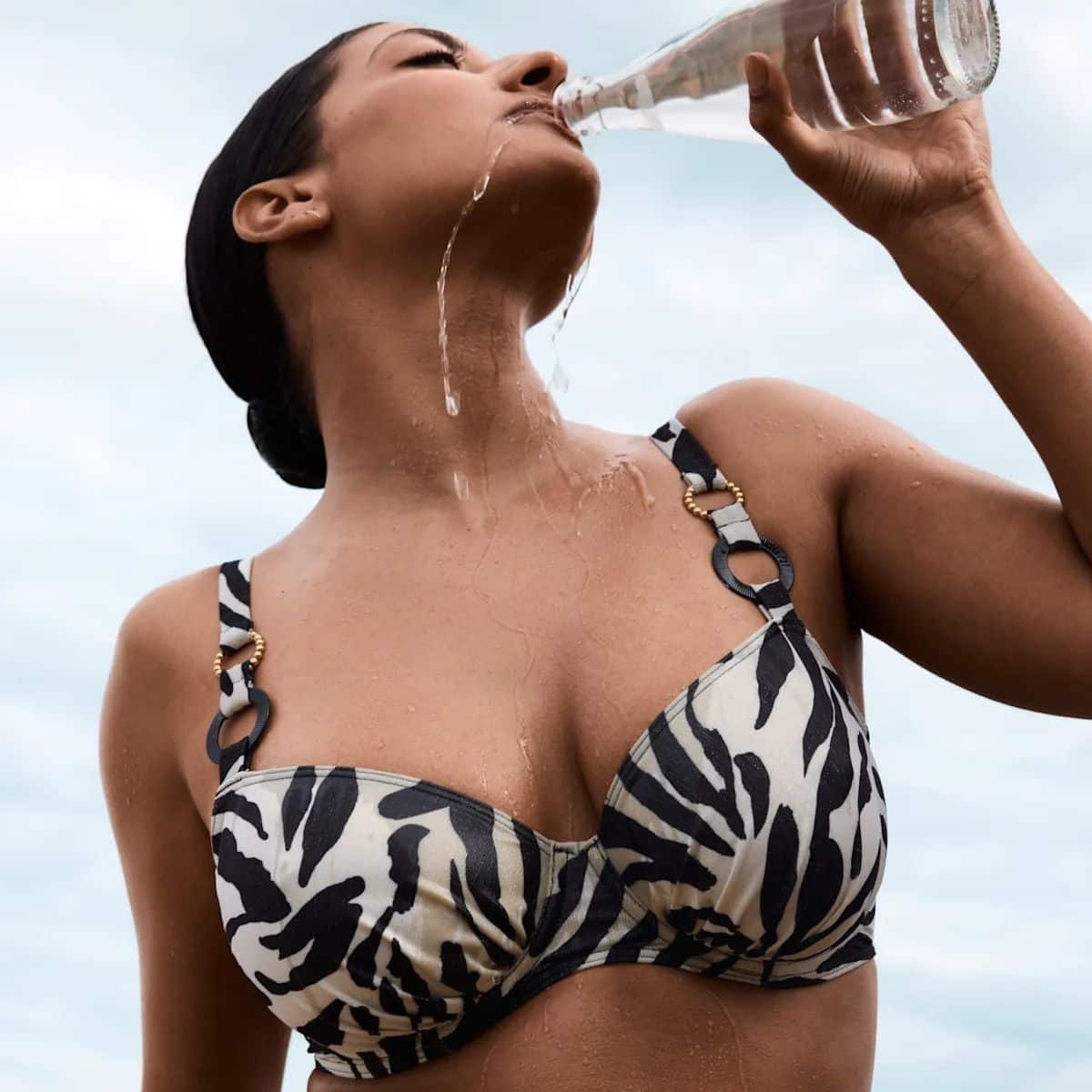 Poolside glam was never this comfy. Pure luxury! Full cup top that lifts your bosom with confidence. Cool print with a glitter effect.