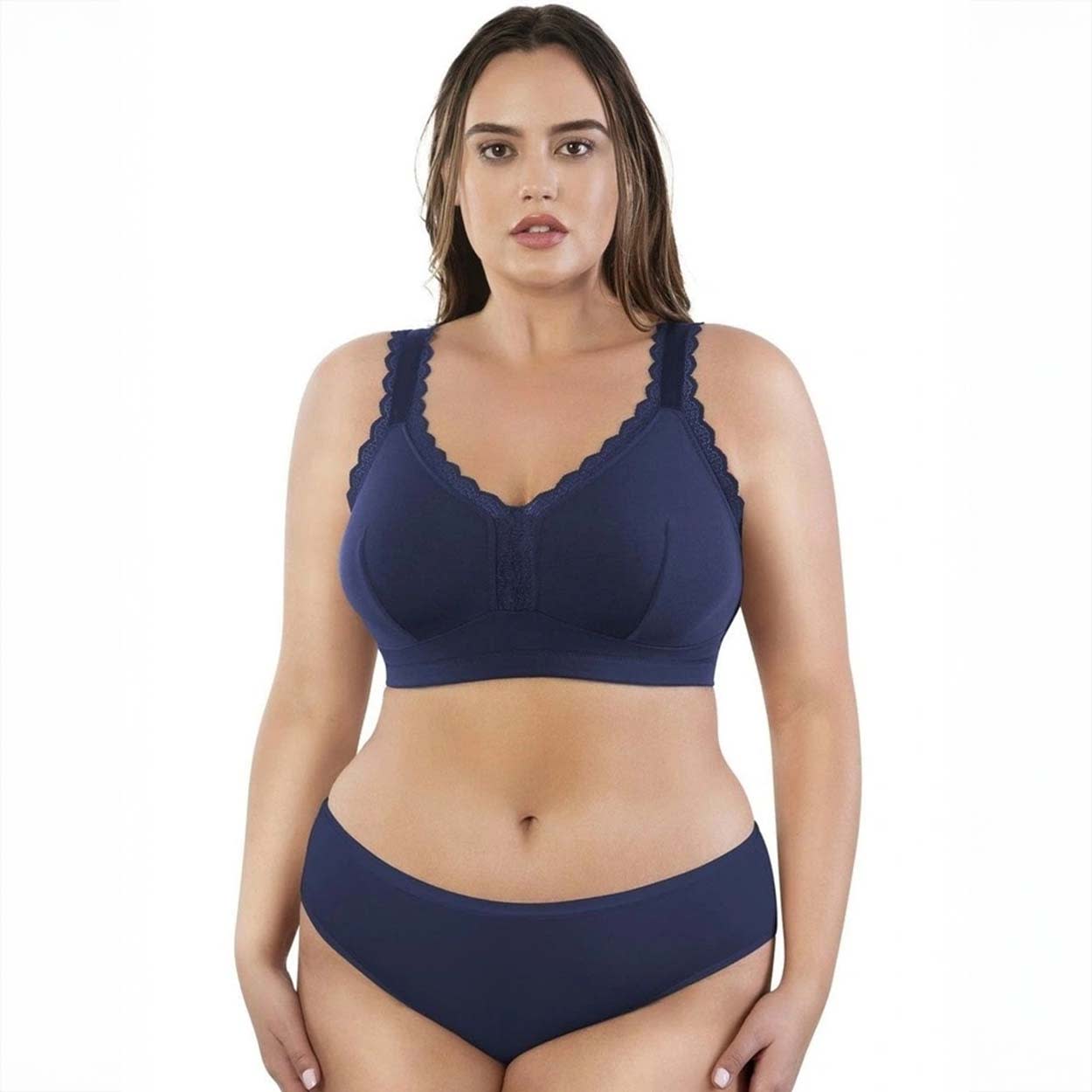 Indulge in both dreamy comfort and chic style with the Dalis Wireless Modal Bralette. Attractively trimmed with lace and designed to offer gentle support for larger cup sizes, it is perfect both for casual lounging and as a sleep bra.