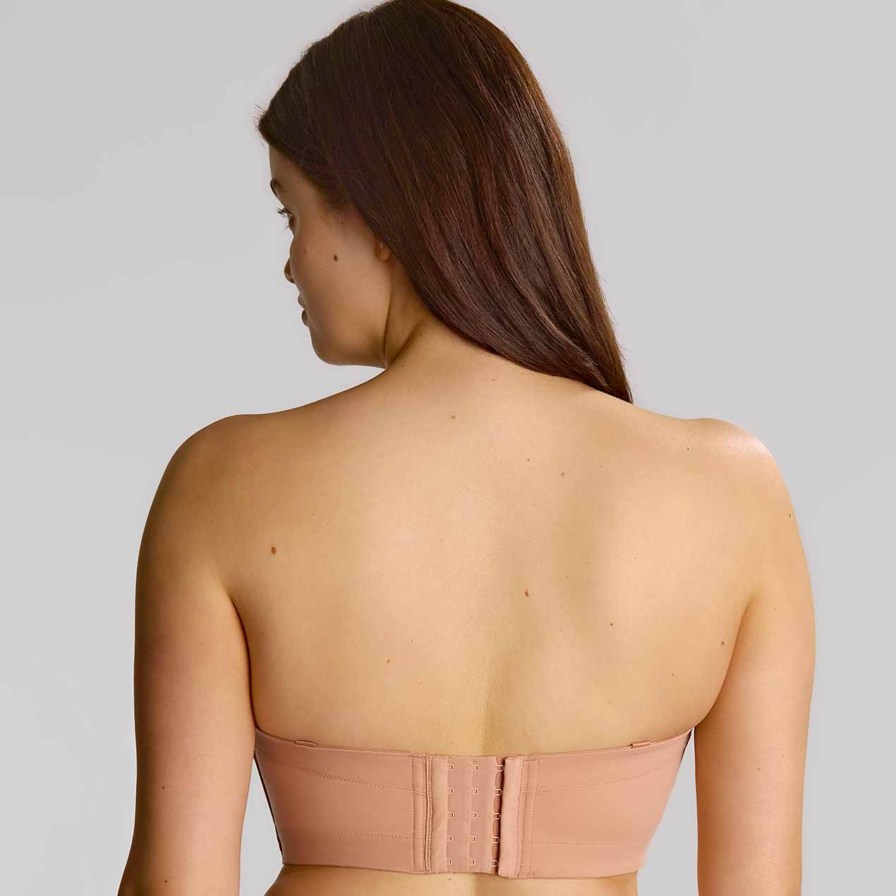 Dana is a fabulous Strapless Bra now available in the Sculptresse range! With slightly shaping wings and a deep hook and eye finish with plastic boning to offer confidence and comfort. Four section padded cut and sew cup shape to provide a supportive and uplifted fit. Styled on a cradle and with double layer slightly shaping wings provide firm and comfortable support around the body.