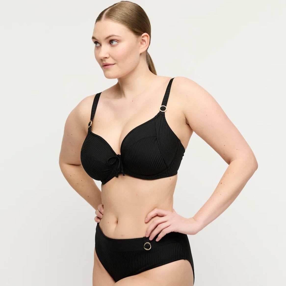 Trendy ribbed look with sun-catching details. Full bikini briefs with an elegant cut that flatters your belly.