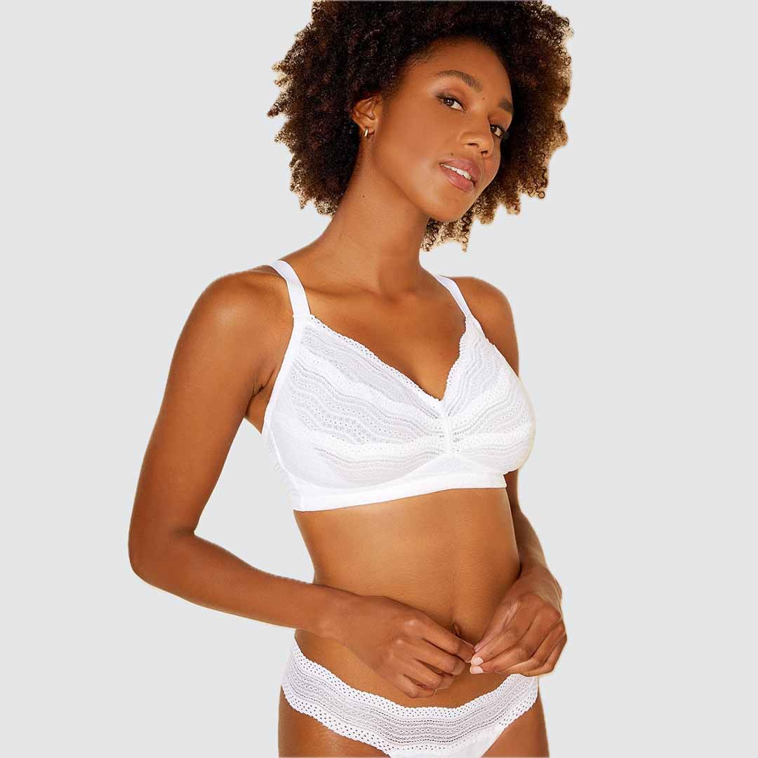 A wireless bralette crafted from soft lace, designed for all-day comfort. Lined with powermesh to provide gentle support, it features wide adjustable straps that won’t dig in. Dolce Curvy Bralette is finished with a hook-and-eye back closure and side slings for added shaping and lift.