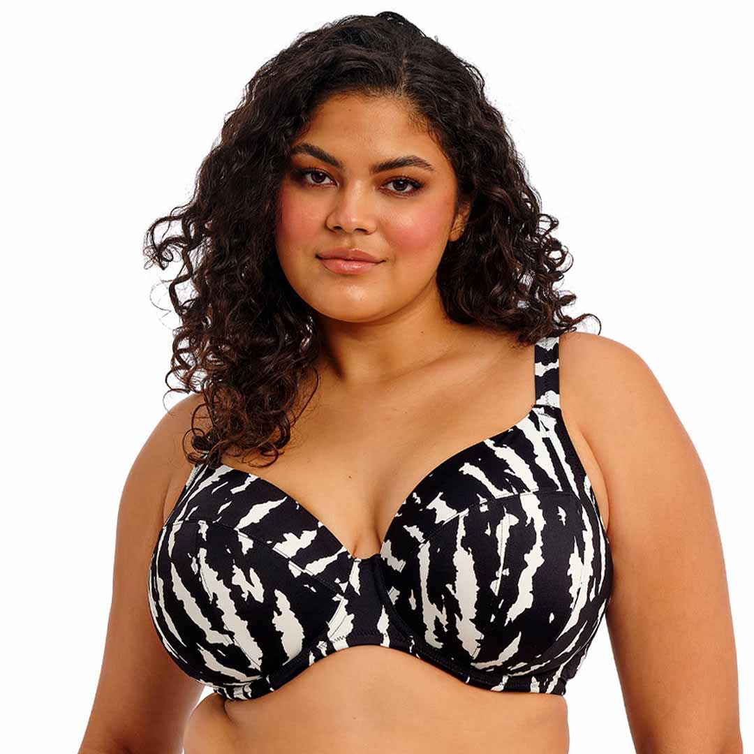 The Echo Shell Plunge Bikini Top features a neckline with concealed elastic for an effortless fit and is fully lined with a light yet supportive fabric, offering the look of a bikini with the trusted fit of an Elomi lingerie bra. The cups, straps, and back are crafted from a lightweight printed fabric with LYCRA® XTRA LIFE™ for enhanced durability, while the powernet back lining provides added support. Finished with adjustable shoulder straps for a personalised fit.