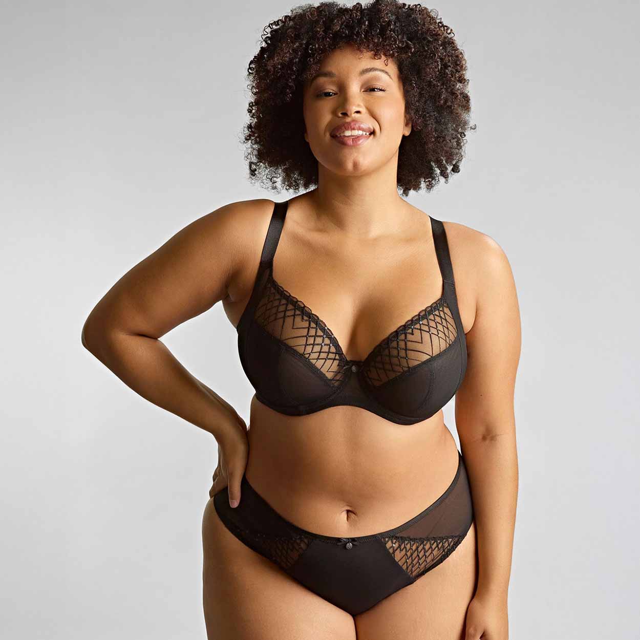 Shimmering delicately with every move, the Ella Plunge Bra is the perfect set to take you from day to night. Lightweight and easy to wear, this bra proves that intricately crafted lingerie can be both body-loving and beautiful. Tonal sequined embroidery adds an elegant yet subtle sparkle, while side support and a secure fit reduce bounce and enhance your natural shape. Gunmetal detailing provides a contemporary and elegant finish. The Ella Plunge Bra adds a touch of glamour to any occasion, ensuring you feel confident, comfortable, and effortlessly chic.