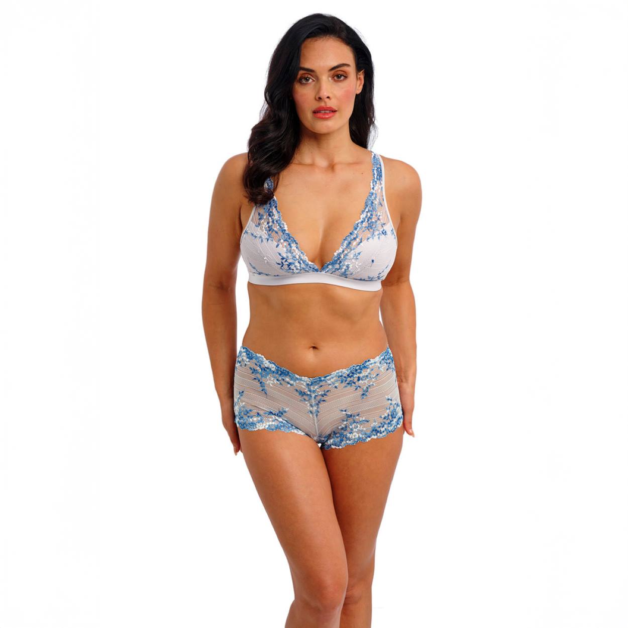 This Embrace Lace shorty from Wacoal is simply styled with dainty lace & contrasting floral embroidery. The front & rear panels are semi-sheer keeping it feminine, playful & a little bit sexy. The elasticated waist is adorned with floral patterned edging.