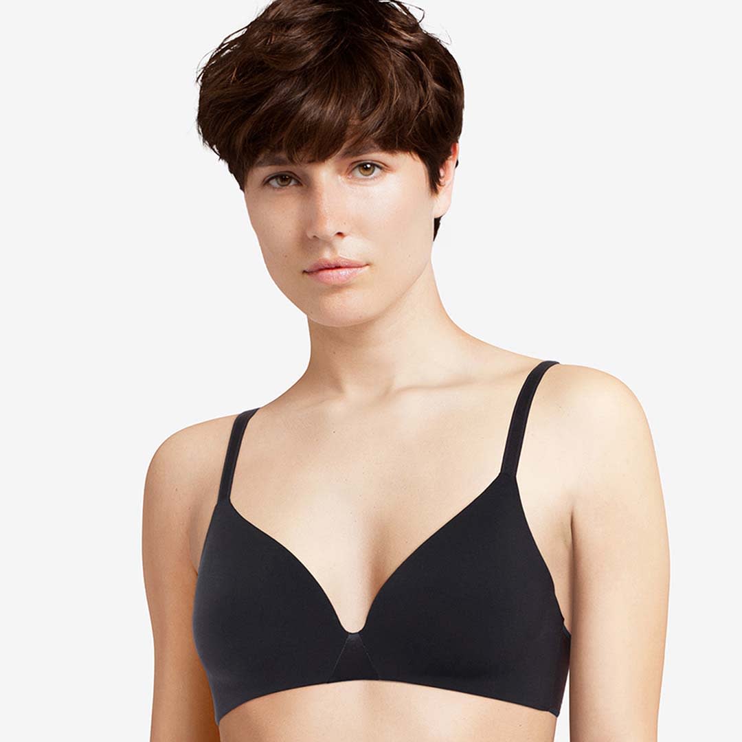 The Essentiall Wirefree Triangle T-Shirt Bra provides natural shaping and excellent support for the bust. Its cups are constructed in one piece and covered with a smooth and soft knit, sitting on a base for added stability. The new soft and semi-rigid cup pad offers ample firmness, providing extra reassurance, particularly for larger sizes. This T-shirt bra is an essential item, perfect for everyday wear.