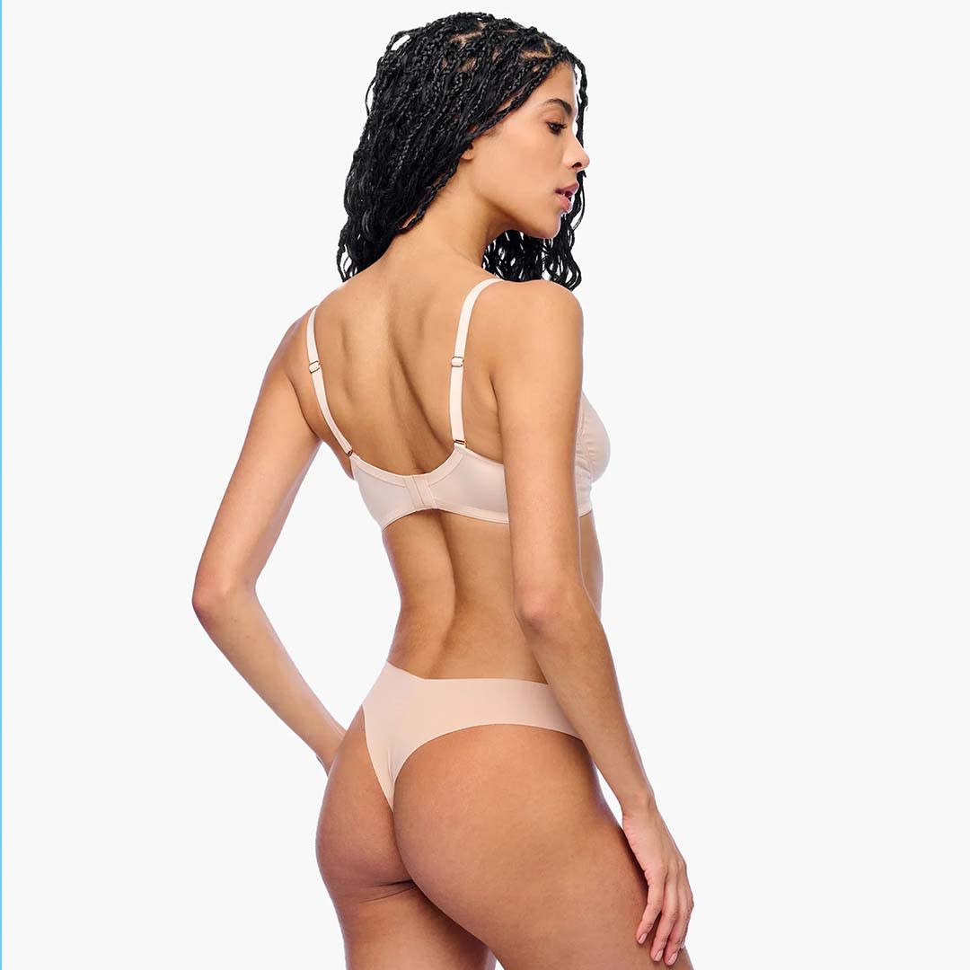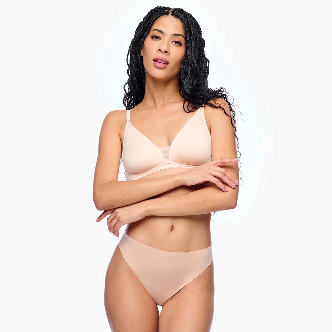 A sleek bralette designed in ultra-soft microfiber for a smooth, second-skin feel. The Evolution Bralette features a U-shaped ballet back that offers light support with all-day comfort, while a delicate sheer panel at the centre front provides subtle coverage between the cups. Finished with adjustable straps and a hook-and-eye back closure. Hand wash in cold water; lay flat to dry.
