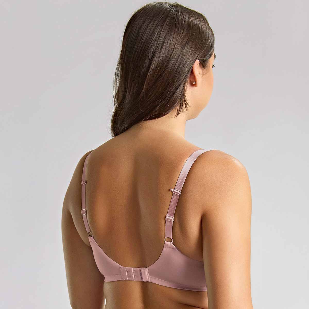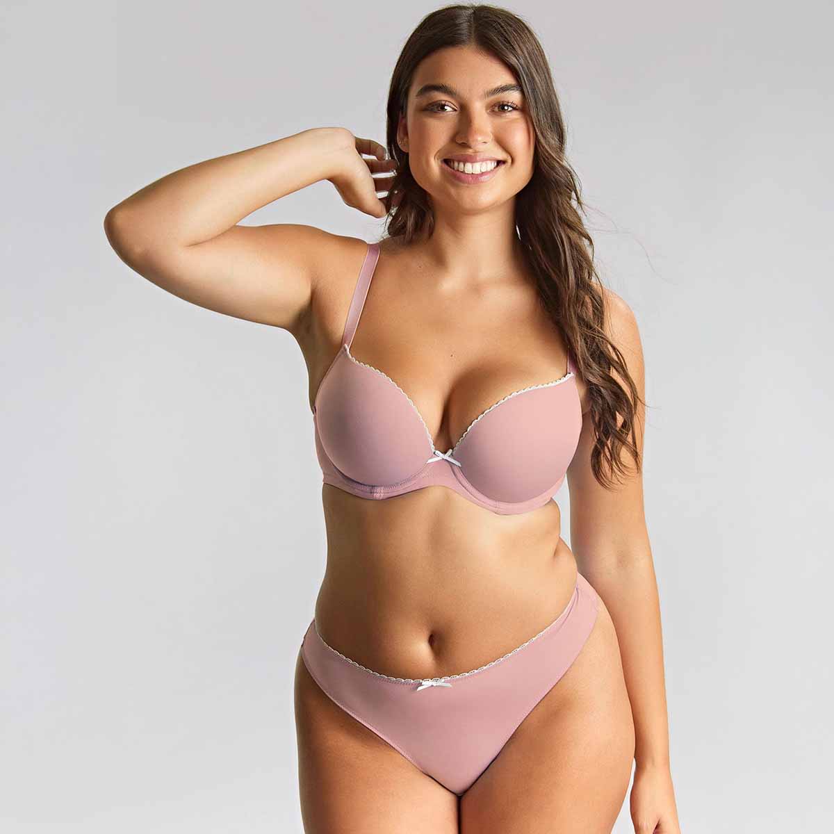 Featuring a beautifully smooth, semi-sheen microfibre, mesh detailing along the wings, and silver trim for a modern and sleek finish. Faith Moulded Plunge Bra offers a smooth silhouette under clothes, with soft recycled microfibre. Lower sitting wires for less coverage and more cleavage, creating the perfect plunging shape. The high back apex and back scoop provide smoothing coverage and a firm and comfortable fit around the body. The perfect everyday essential.
