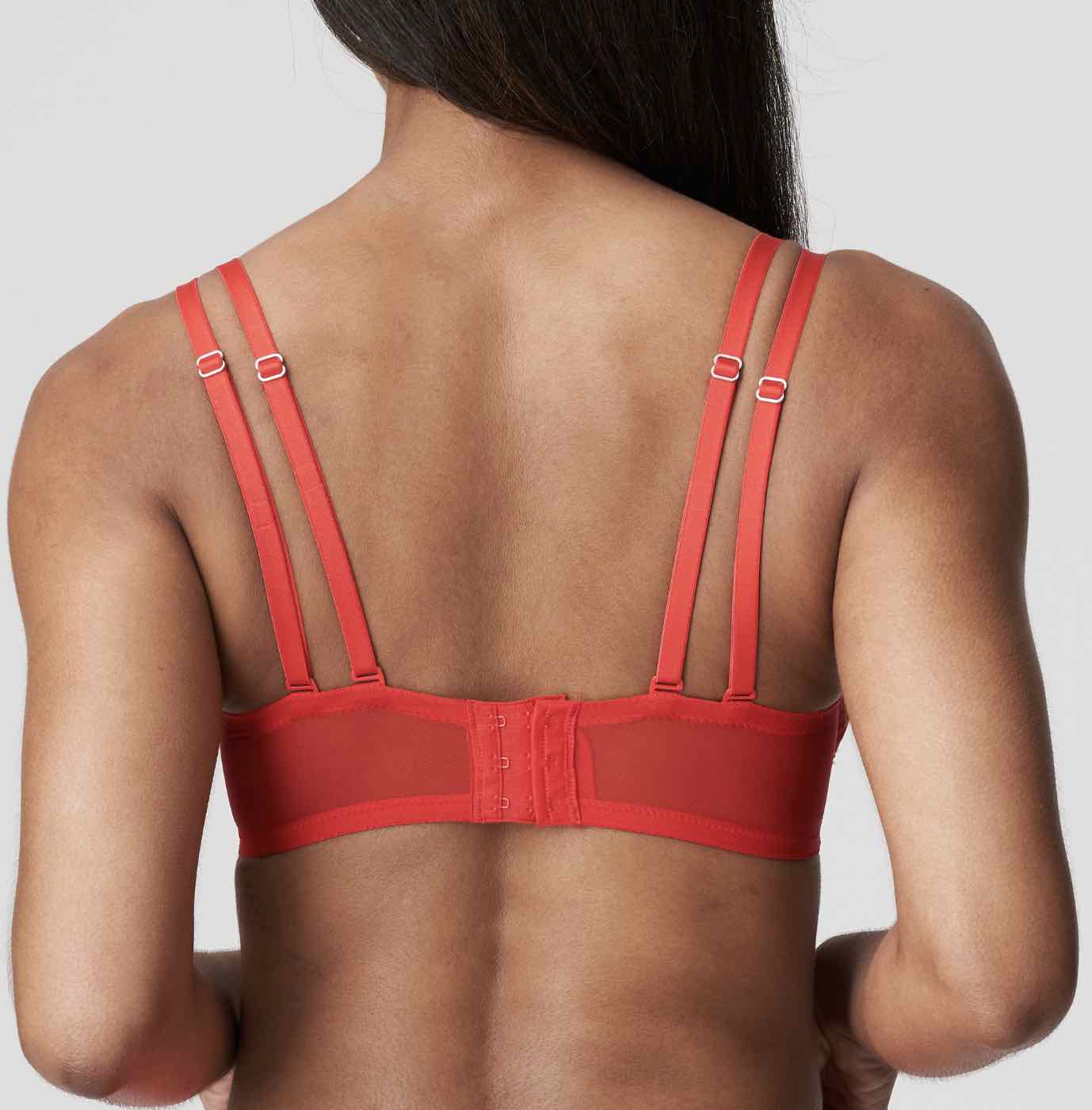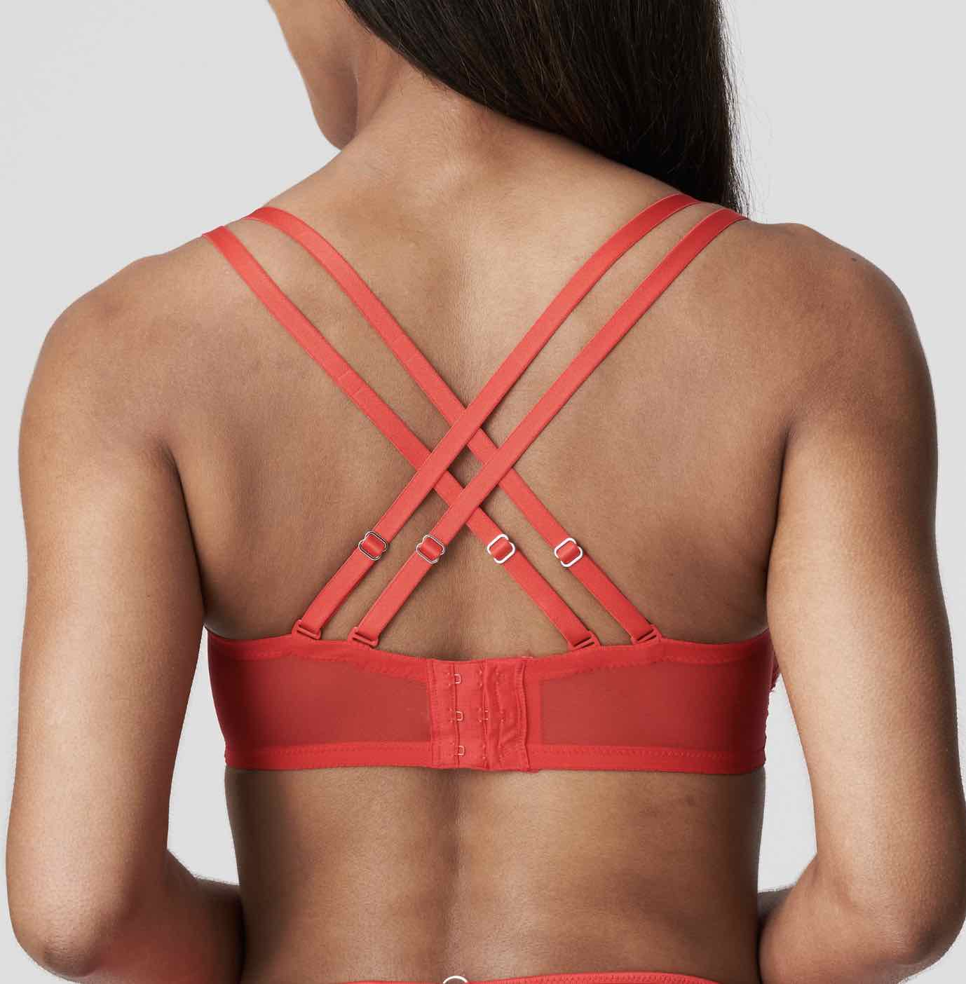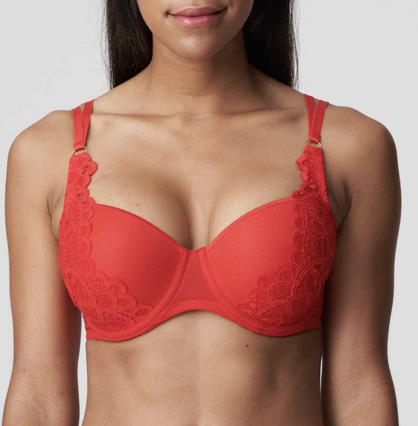 First Night Padded Balcony Bra with lace draping beautifully frames your breasts to create the illusion of a fuller cleavage. Ultra-seductive, a reliable everyday bra with adjustable straps that can be worn over the shoulders or crossed at the back and hook and eye closure, ready to adjust to your needs.