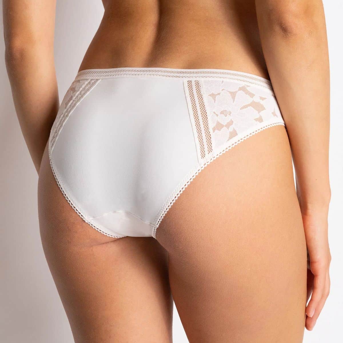 An essential brief for everyday comfort. The heart-kissed details: A bold floral lace, soft, elasticated and respecting ethical standards, combined with a graphic elastic to emphasize the curves of the body.