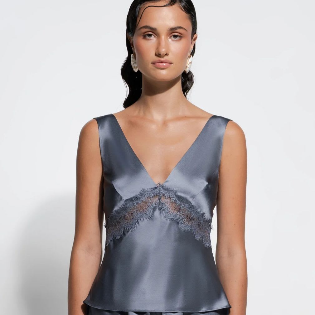 The Gigi Cami is crafted from 100% silk and drapes beautifully on the body with a bias-cut silhouette that moves with you. A double-layered bust offers subtle coverage and structure, while delicate lace inserts under the bust add a touch of feminine detail. Finished with wide shoulder straps for comfort and balance.