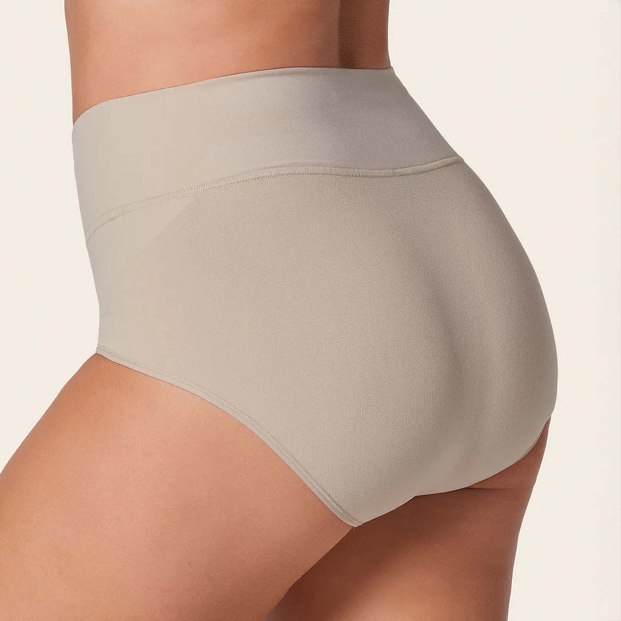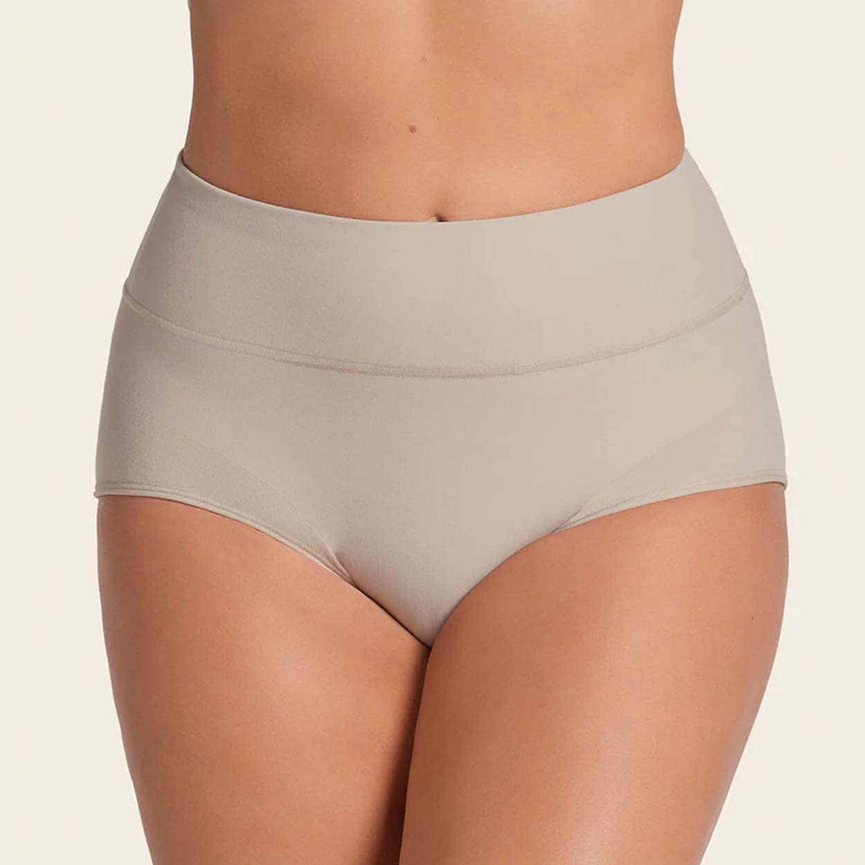 The High-Waisted Classic Shaping Tummy Control Brief offers the perfect blend of comfort and compression. This brief features a double-layered waistband and tummy for stronger shaping, sculpting your waist and flattening your mid-to-lower tummy. Flexible side boning ensures it won't roll down, and the lightweight SkinFuse® fabric gives a second-skin feel. With a slightly sheer back, it feels lighter while still offering a gentle butt-lift effect. Minimal seaming ensures an invisible look under clothing, and a 100% cotton gusset adds comfort.
