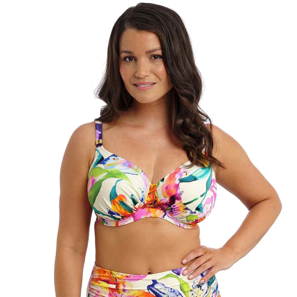 Bring a burst of colour to your holiday wardrobe with the Iguazu Falls collection. Featuring vibrant colour pops on a soft off-white base, this range flatters all bust shapes with gathered, fuller coverage cups and a concealed side sling for forward support. Powernet-lined wings and adjustable straps ensure comfort, while the metallic gold apex trim adds a touch of luxury that won’t heat up in the sun.