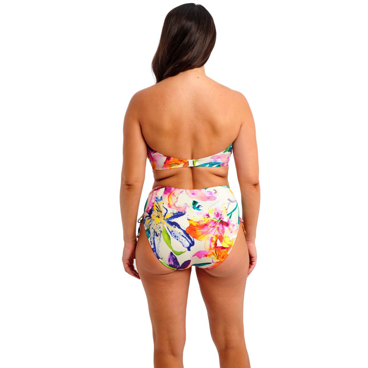 Add a touch of joy and escapism to your holiday wardrobe with the Iguazu Falls collection. Bursting with vibrant colour pops on a soft off-white base, this swimsuit features lightly padded cups for a smooth, rounded shape, a flattering twist front neckline, and concealed underwire for added support. Finished with detachable scarf tie straps and metallic gold trim that won’t heat up in the sun — perfect for stylish comfort under the sun.