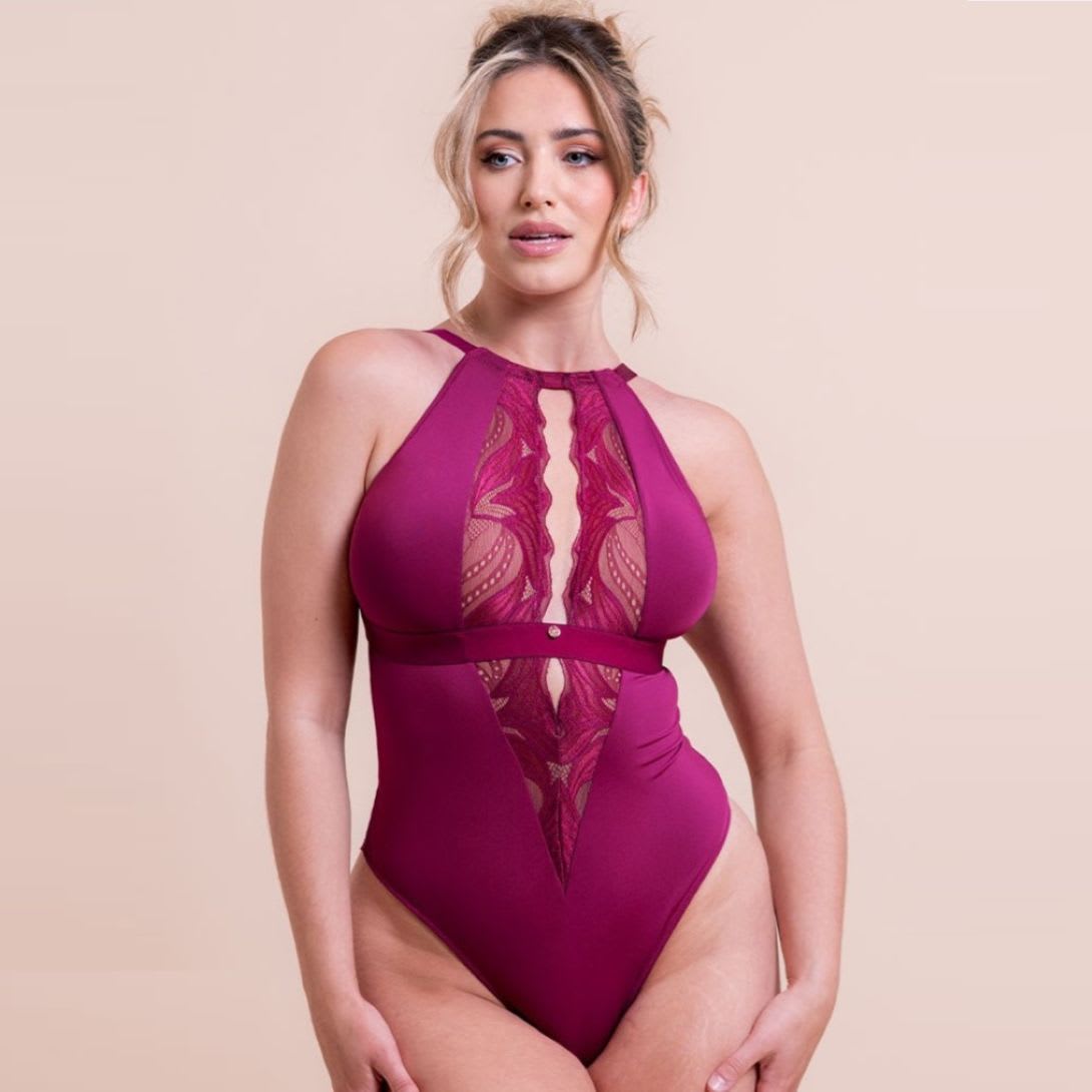 The non-wired Indulgence Stretch Lace Bodysuit is cleverly cut to be surprisingly supportive and has an adjustable fastening underneath which suits a variety of body lengths. With beautiful scalloped edges and a deep keyhole front. It supports DD-HH cup.