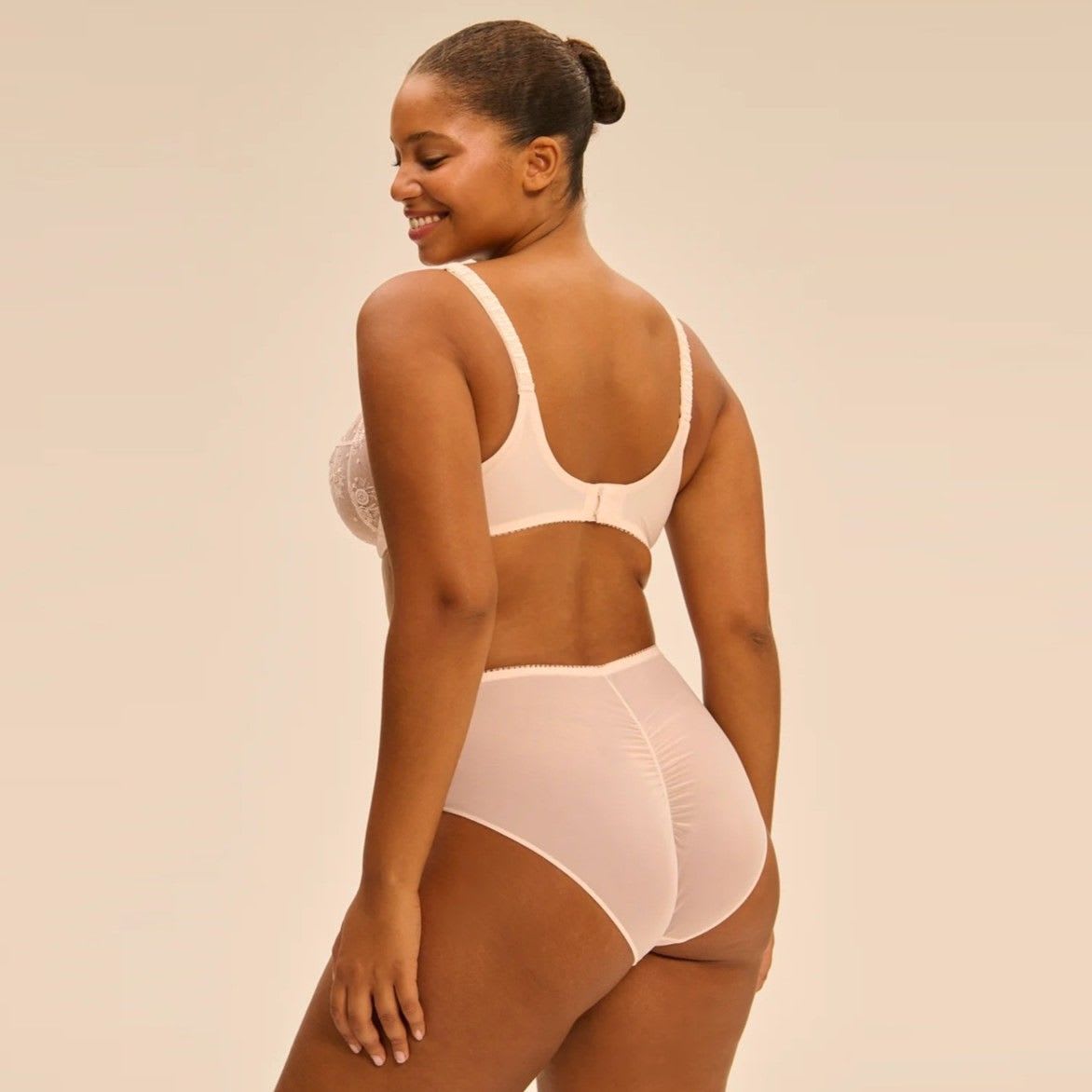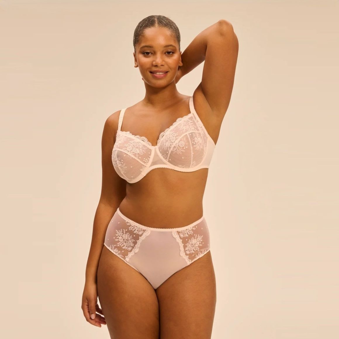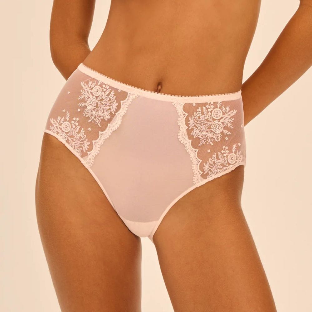 Vintage-style and elegant florals come together in the Intrigue Culotte Brief, an archive-inspired brief made from sheer tulle adorned with embroidered florals. Available in, this semi-sheer brief is sensuous and figure-flattering. You'll adore the high-waist style that elongates the silhouette and back-ruching which gently accentuates curves, whilst fine elasticated trim around the thighs provides comfort throughout the day.