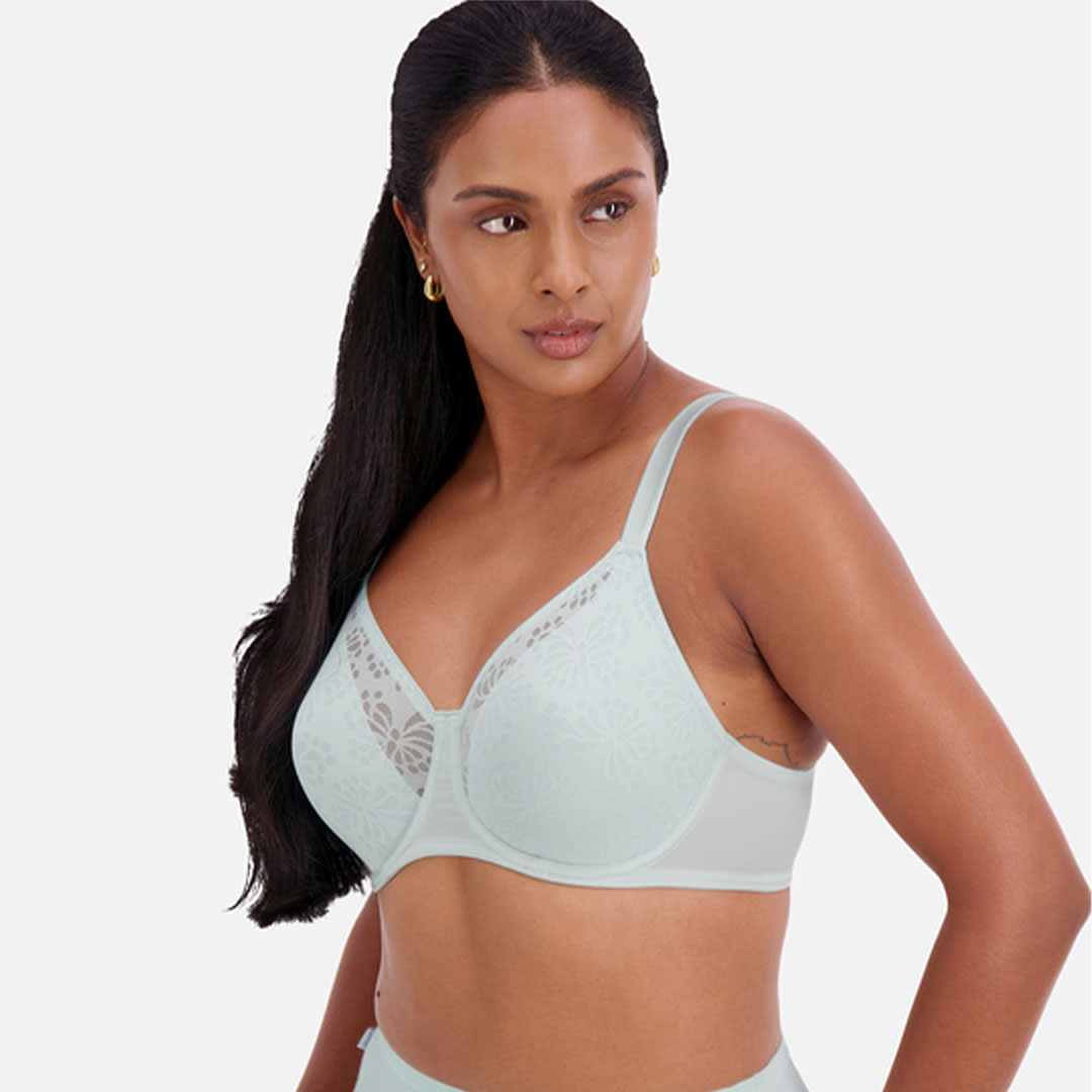 This minimizing set refines the appearance of your curves in a delicate and sexy elastic lace-covered fabric. Designed with larger cup sizes in mind, the bra can visually reduce your bust by up to one cup size.The cups are partially lined for support with a semi sheer panel at the top cup softening the look and visually reducing the size of the bra. Soft feel straps and hook & eye provide wearer comfort.