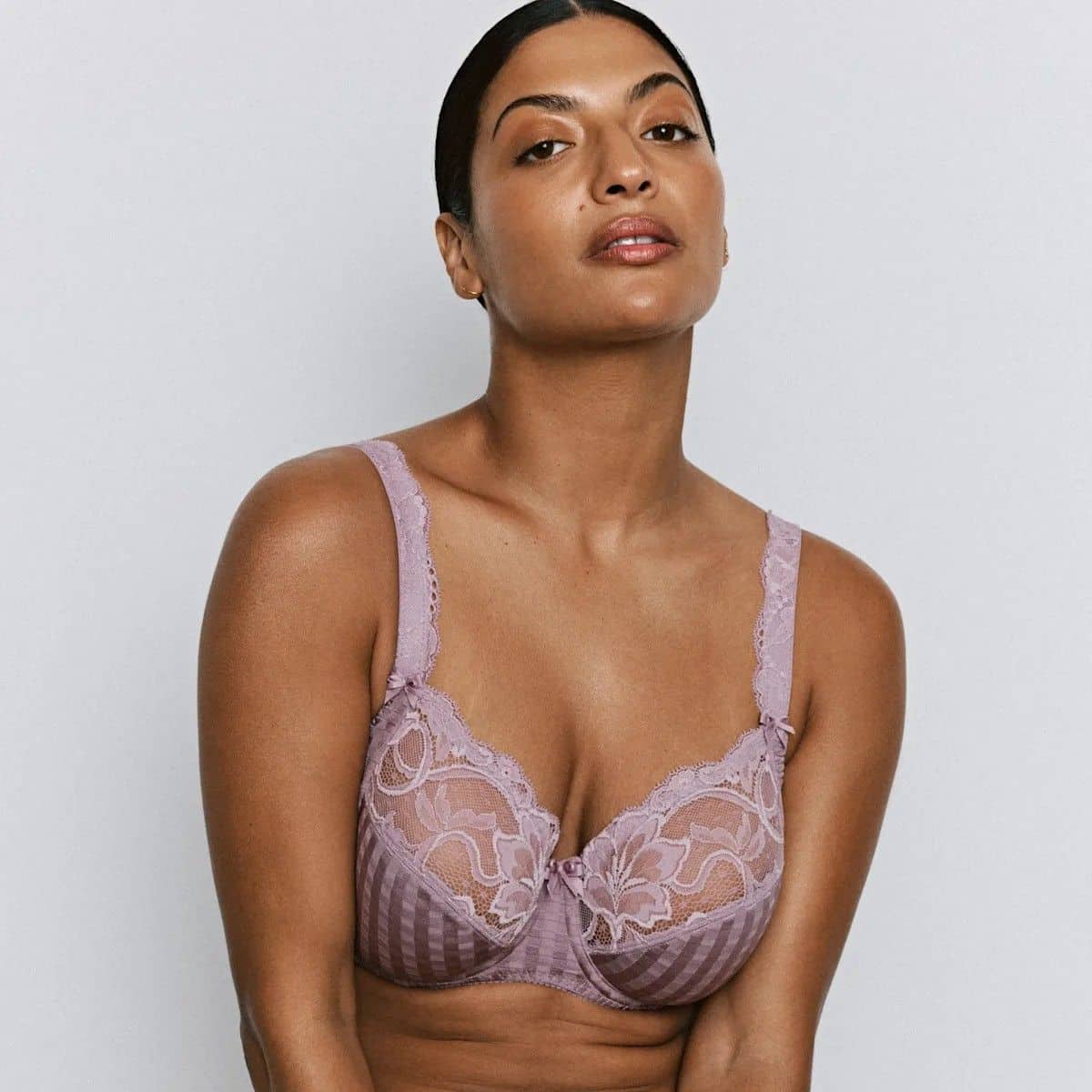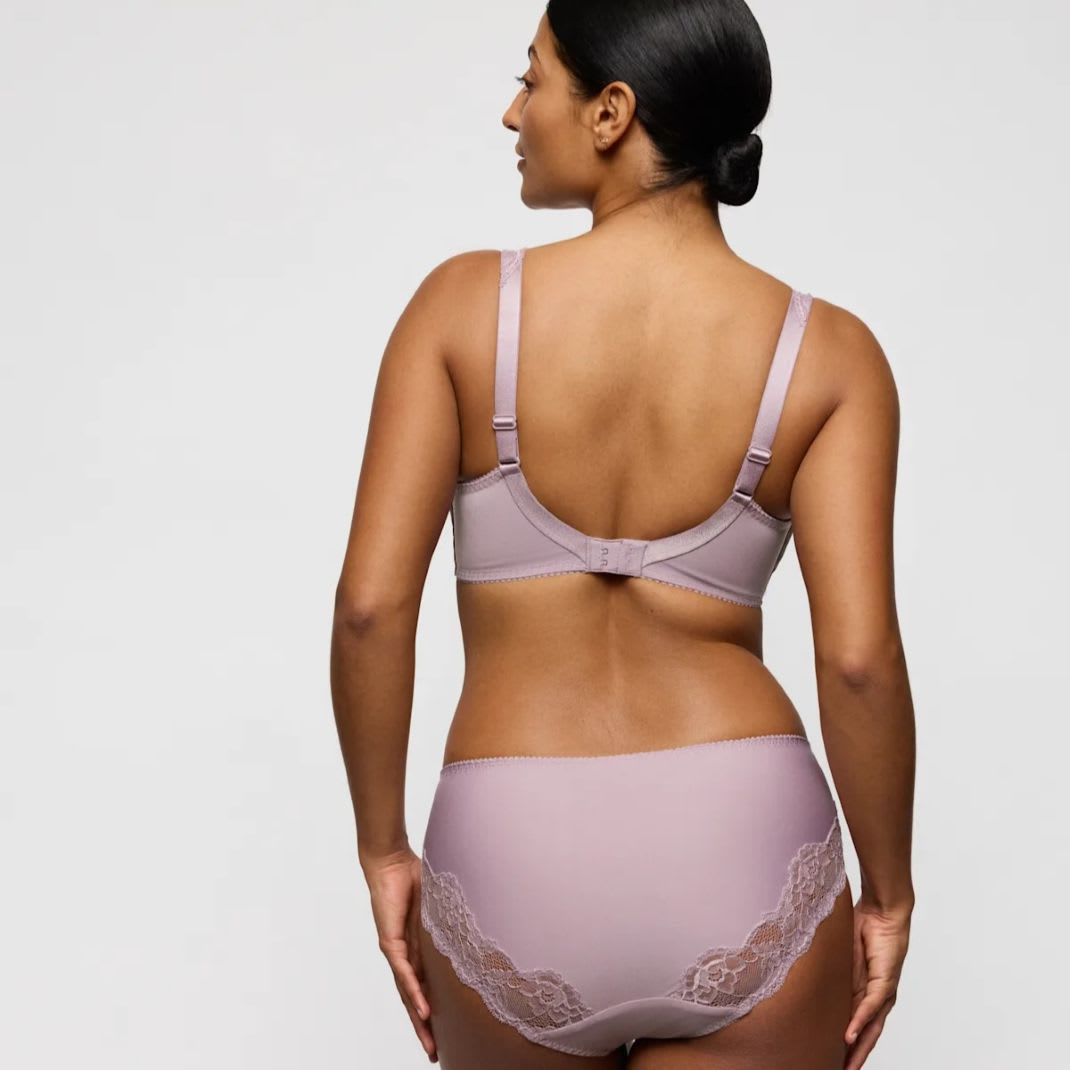 The PrimaDonna Madison Full Cup Bra is a three-section underwired bra with a fantastic fit and great shape. The top of the cup features stretch lace that hugs your curves and the checked pattern on the lower cups gives a youthful look. The sturdy cups lift the breasts, which are also centred by the side support. The cups are quite deep, which ensures better uplift for larger breasts, shaping them to create a smooth, round look.