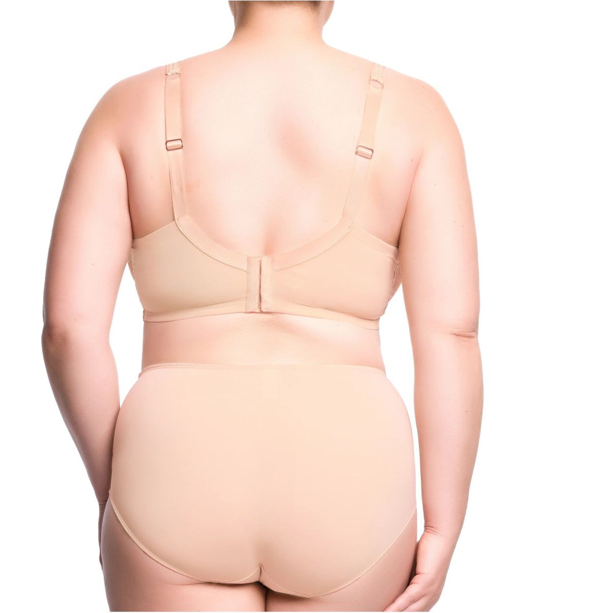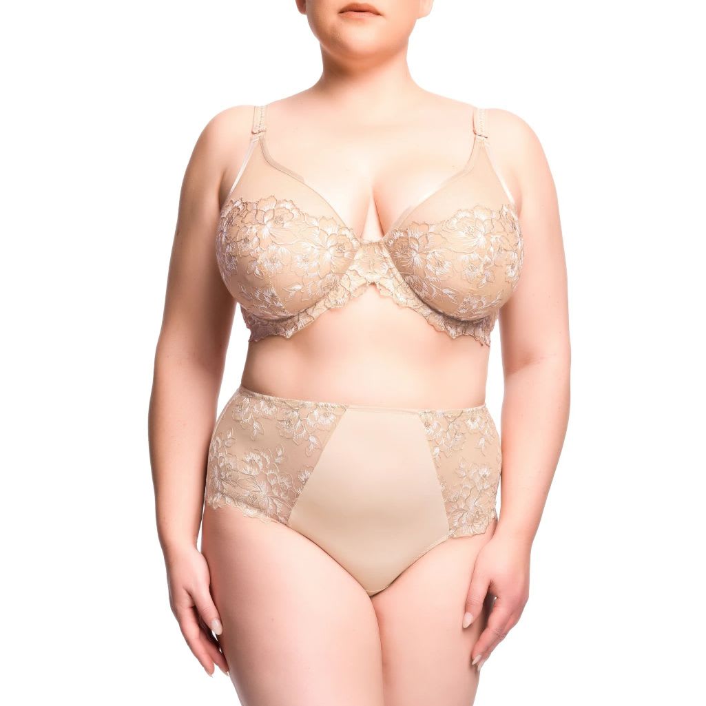 Beautifully designed with fine attention to detail. Featuring a two-tone embroidery on soft stretch tulle with a hidden mesh sling in the bottom of the cups for lift and shape. This bra has been designed in consultation with the curvy customers.