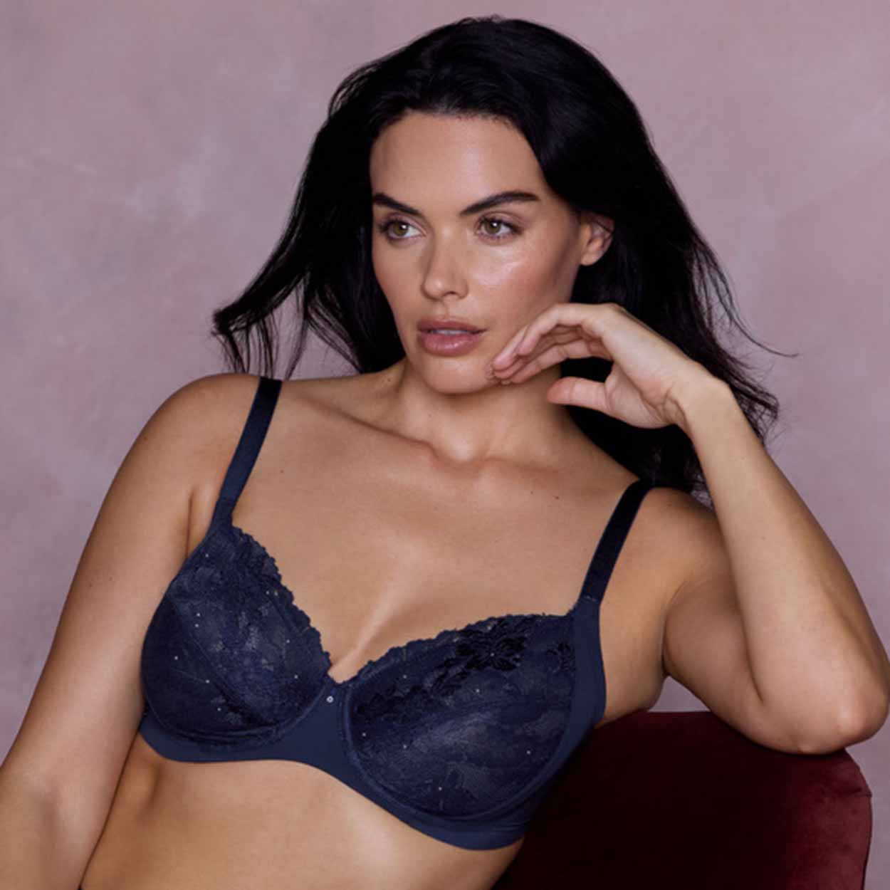 Experience exceptional support and a beautiful silhouette with the Most Divine Underwire Bra. Crafted with stretch lace cups showcasing delicate viscose yarn flower accents, the top cup features a sheer elastic neckline for a perfect fit. A microfibre side sling enhances shaping, while microfibre wings offer lasting comfort and support. This bra is finished with a sparkling diamanté charm, thoughtfully designed underwires for varied support, a supportive stretch mesh lining, adjustable satin-look straps, and a soft-touch closure.