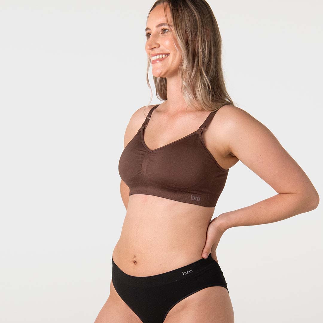 My Necessity is a luxurious multi-fit seamless bra with removable foam cups and a side sling support. It will be an essential in your hospital bag, great for sleeping in and ideal for those cosy days where comfort is all you want!