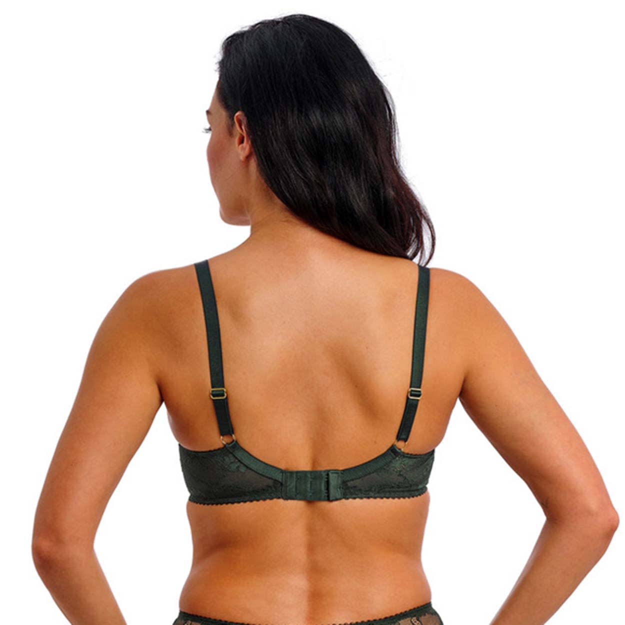 The Natsuki Lace Underwire Bra offers a natural shape with its three-section average wire cup. The stretch lace top cup has a sheer elastic along the neckline for a perfect fit, while the stretch satin bottom cup is lined and has a hidden dart for maximum shaping, with a stretch lace overlay. An intricate dropped center front is adorned with stretch lace and a gold-colored charm. The allover stretch lace wing is lined with mesh for support and comfort, and a scoop center back ensures straps stay in place. The outer wire casing is trimmed with stretch satin for a luxurious look. This bra also features decorative picot elastic at the underarm, top of the wing, and underband, with underwires that vary in strength across sizes to ensure a great level of support and shape. It has fully adjustable stretch satin-look straps and a soft-touch hook-and-eye adjustment for a custom fit.