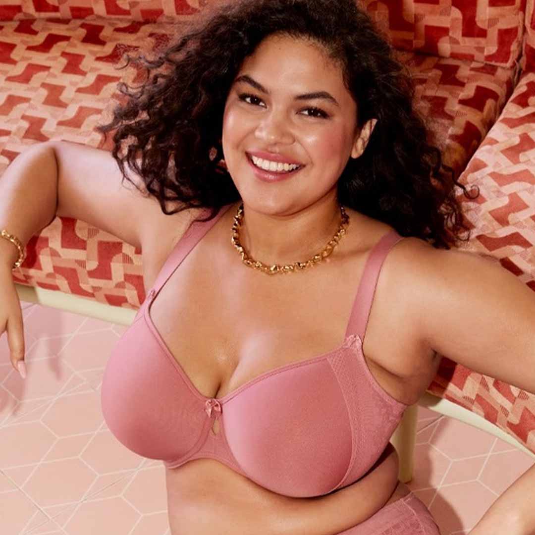Based on Charley EL4383 UW Moulded Spacer Bra, this bra has Ultra-light Seamless spacer cups with smooth lace side cup panels for support. Bandless frame has less fabric under the cups and works well for shorter upper torsos. Inner simplex side support panel with soft, silky feel for a forward shape.