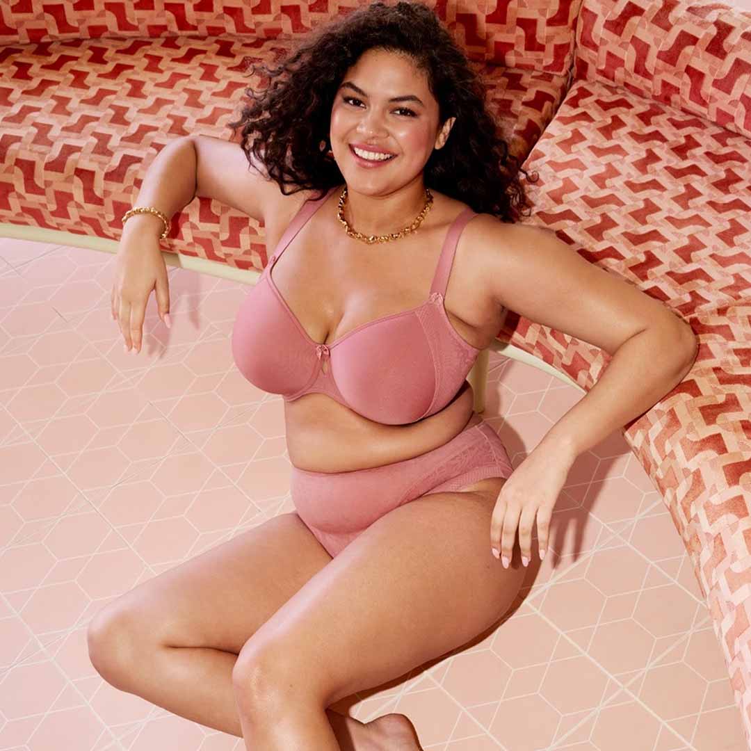 Double layer-stretch mesh front, and back for modesty. Powerful stretch lace on leg edges is soft, flat, smooth and matt, with a contemporary design, for a fresh modern look. Stitch free finish on leg edges for a smooth finish and no VPL.