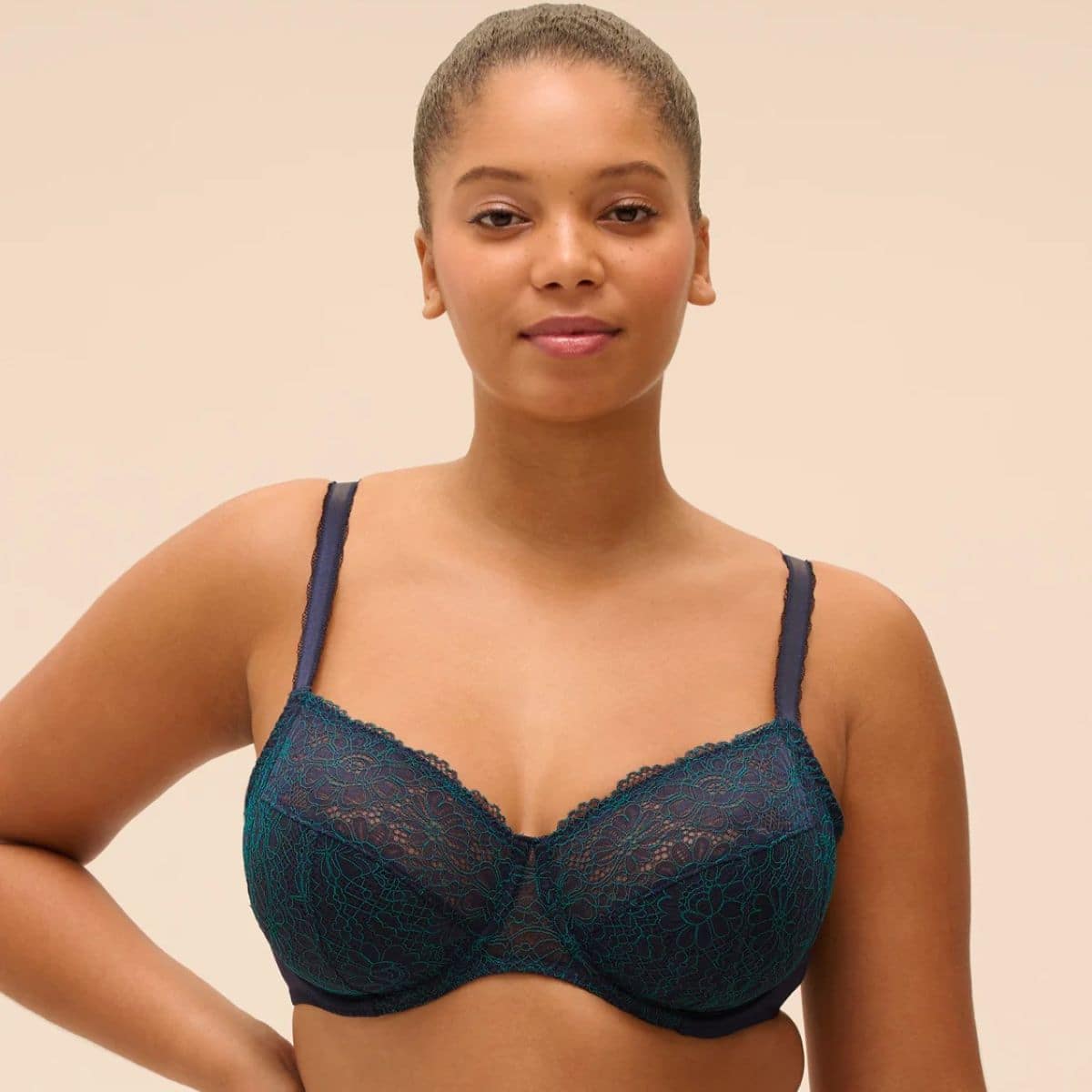 French poetry in lingerie form. The Poème Full Cup Bra combines delicate stretch lace with romantic scalloped trim—and delivers exceptional support with its 4-part cup construction, cotton lining, supportive back band, and fully adjustable comfort straps.