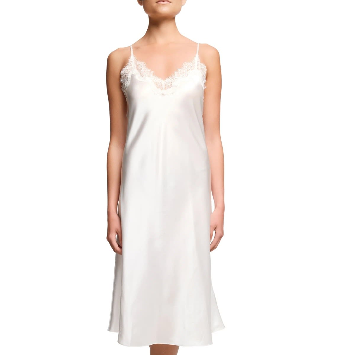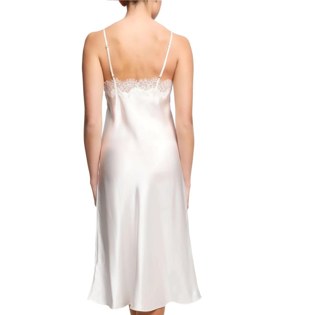 The Scarlett Mid Length Chemise is a beautiful, luxury garment made in pure silk with detailed eyelash lace at the neck. It finishes at mid calf length. To be worn as luxury lingerie or show it off as a slip dress.