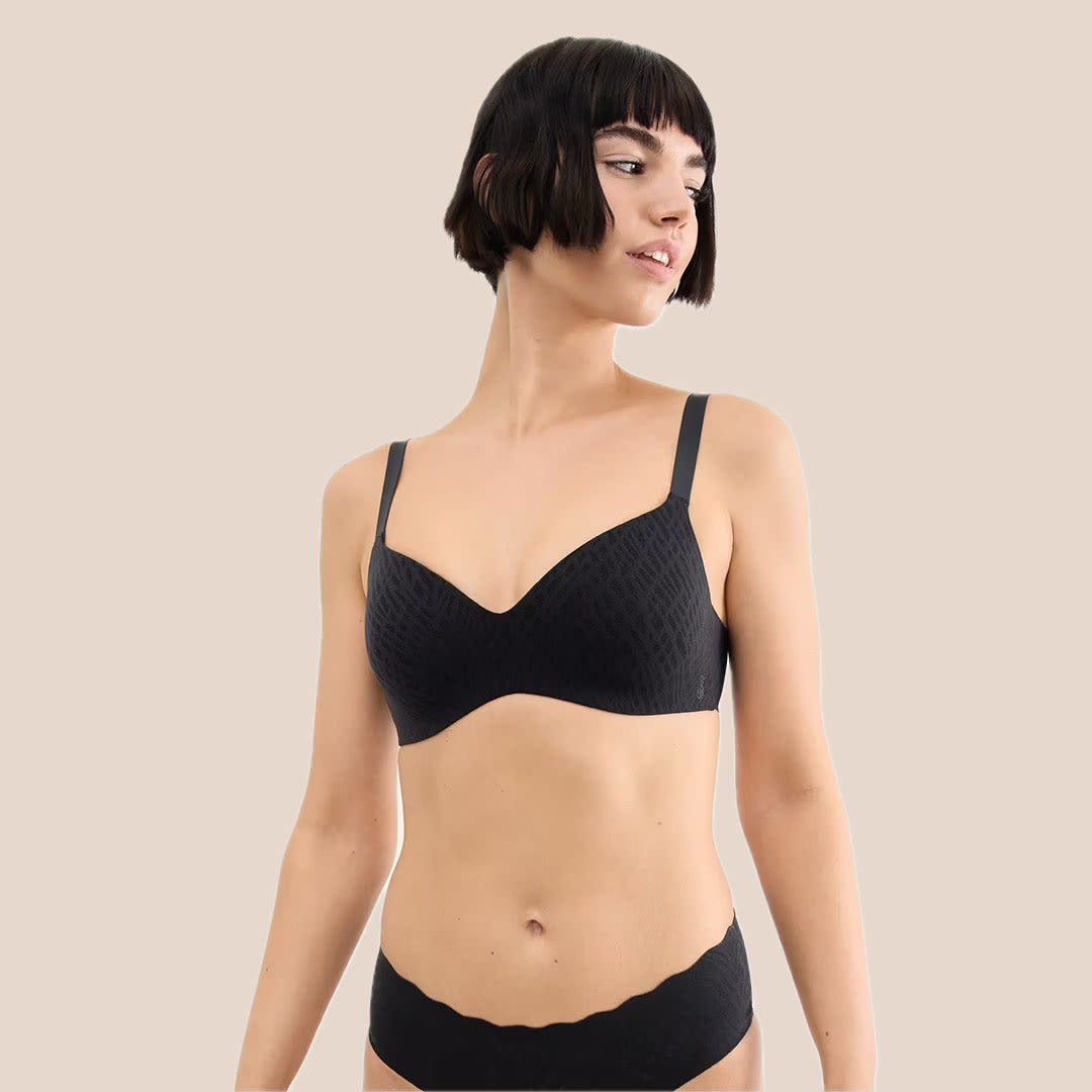 Sloggi ZERO Feel Bliss THE UP T-Shirt Bra: A seamless, wire-free T-shirt bra made from soft recycled microfibre with 360° stretch lace, featuring removable push-up padding for a smooth, lifted shape and an invisible finish under clothing.
