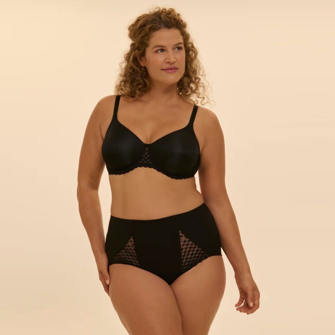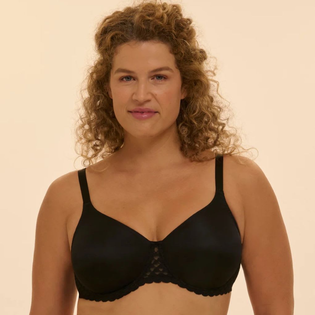 Seamless, moulded cups. Bust-controlling, minimiser effect. Excellent support. Underwired, without pads.