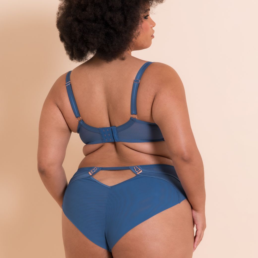 Suspense is our vintage inspired statement range for Scantilly. With lightweight shimmering panelling applied to enhance the curves and to offer underwear as outerwear styling. Non-padded underwired plunge bra. Branded rose gold decorative suspender clips and signature Scantilly charm.