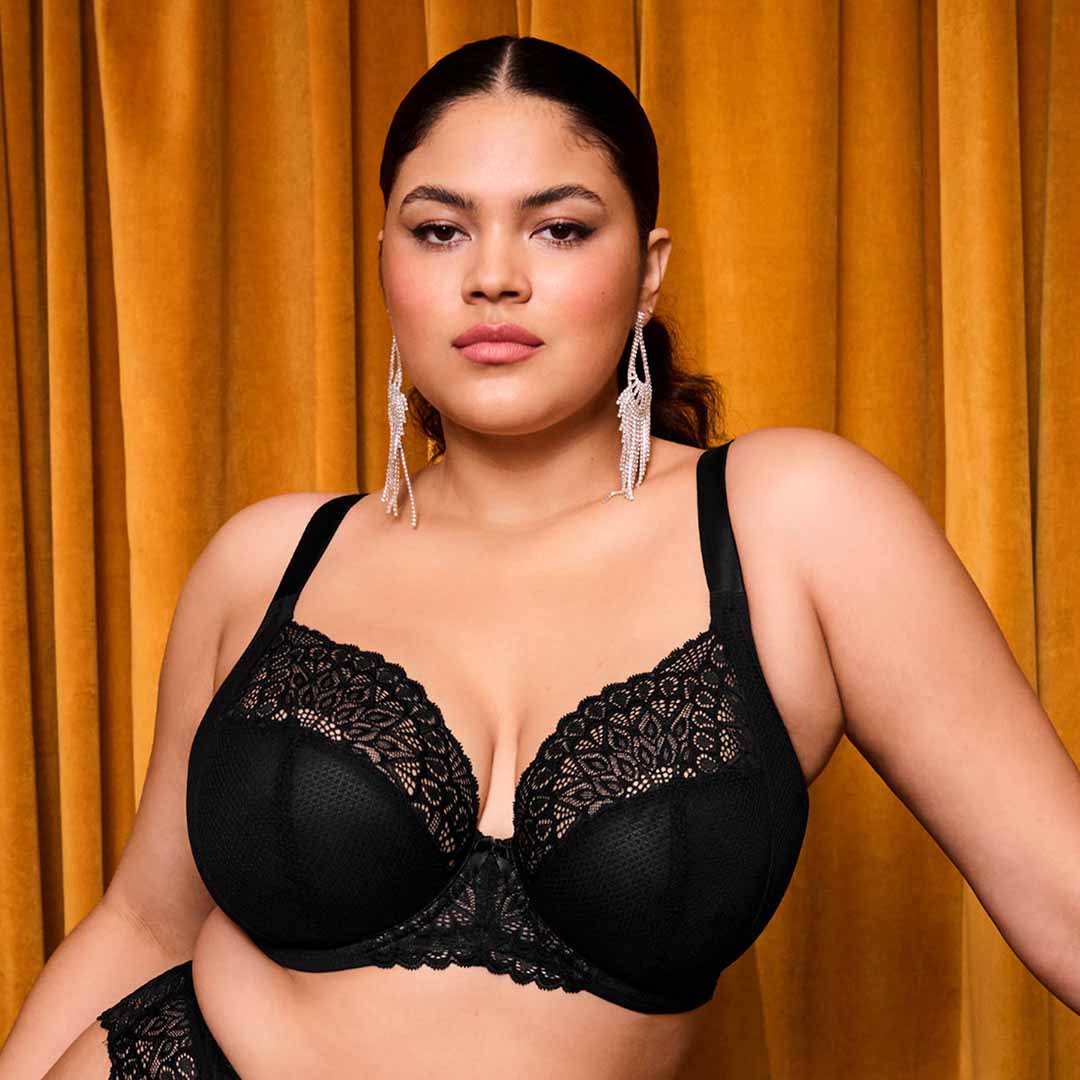The low centre front of the Tiernie Stretch Plunge Bra offers a flattering plunge without push-up, while the powerful stretch lace top cup provides a rounded shape and flexible fit, finished with a smooth neckline, a soft foldover elastic underband for all-day comfort, and a floating lace gore that ensures a no-dig feel.