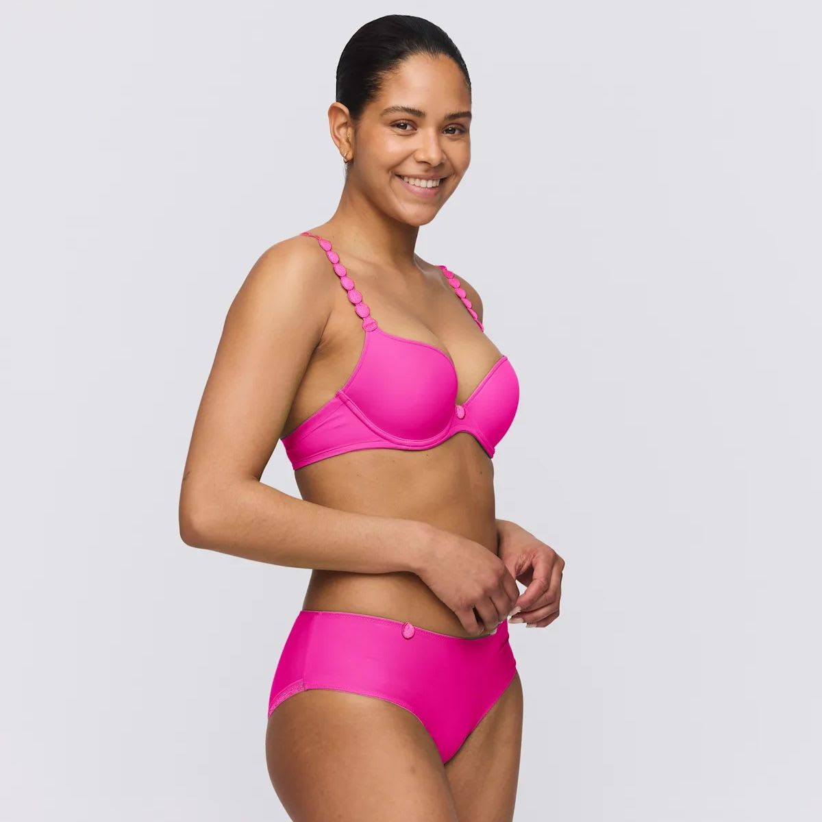 A bold color? Check! A sensual fit? Check! Cool shoulder straps? Double check! With smooth, padded and underwired cups for excellent support and uplift, feather-light fabric and delicate embroidery on the straps and centre panel, this push-up bra has all the details to become your favourite everyday bra.