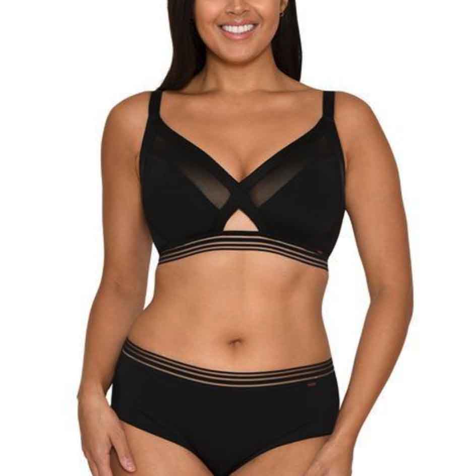 Unwind is Curvy Kate's first non-wired bralette and is designed for when you want comfort and flexibility without compromising on style. The soft elastic neckline offers an ease of fit, while the power mesh lined bottom cups and deeper under band give added support and shape. Adjustable straps and seam free sides mean a flexible fit and maximum comfort. non-returnable.