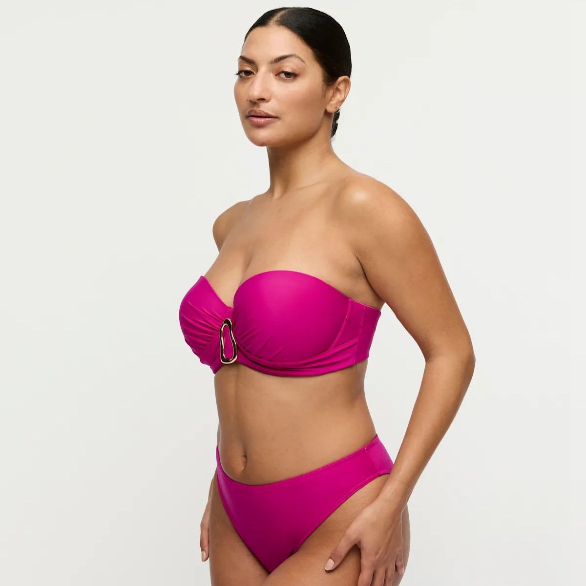 Padded strapless bikini top for a flawless, tanline-free glow.