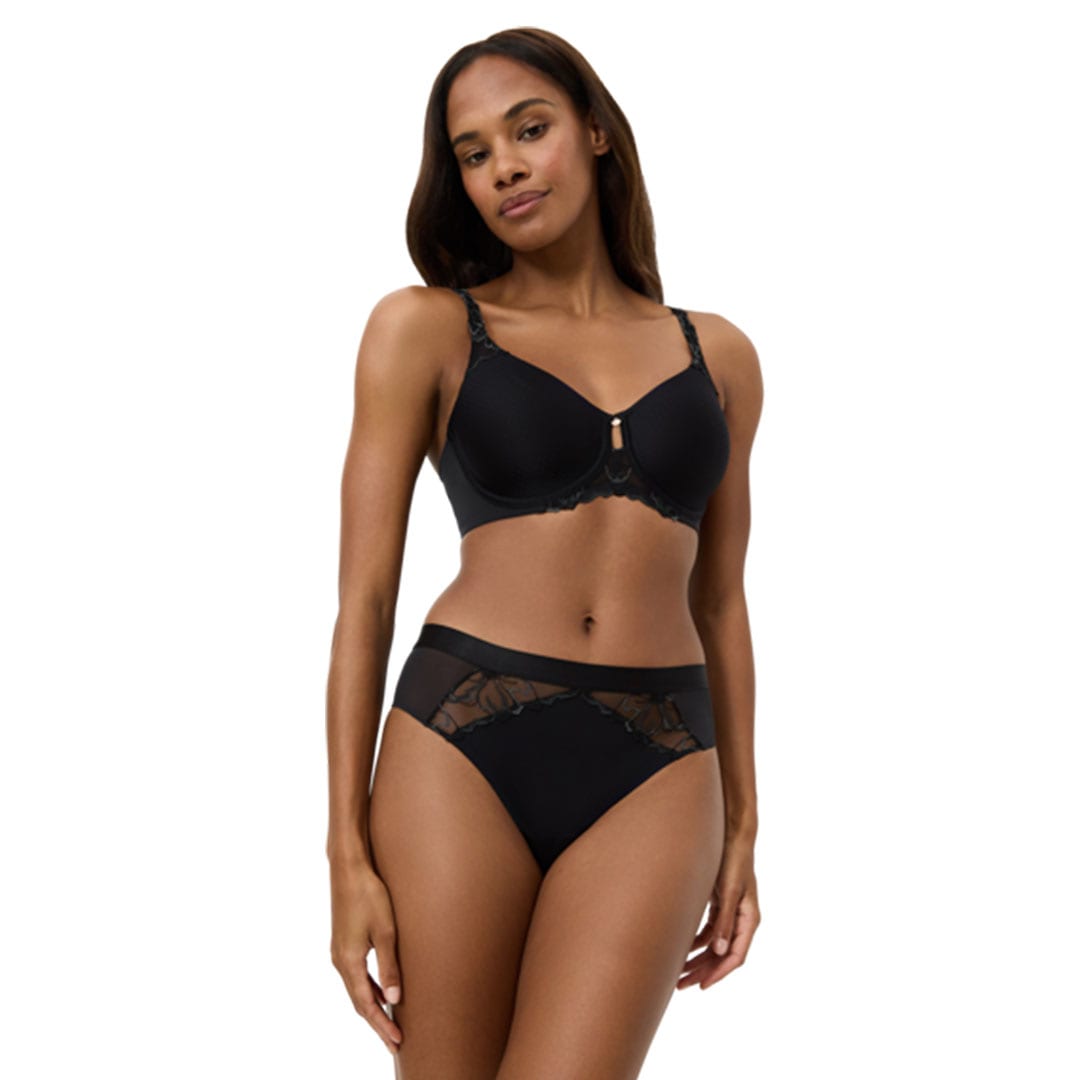 The Wild Azalea Florale Minimiser Bra features delicate multicoloured embroidery paired with luxurious satin jacquard, creating a seductive and unique look. Designed with perfect fits and new necklines, this wired minimiser bra offers ergonomic comfort wires, strong powermesh cup lining, and jacquard fabric woven with satin-shine yarn for both support and elegance.