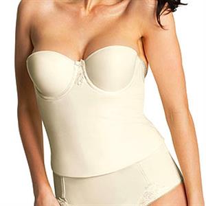 When it comes to corsets, modern lingerie doesn’t come with whale bone, or even steel bones. The bones in the Lace Bustier or Adelaide Basque are made with plastic bones which is a bit more forgiving than steel. There's even boning in the cups which makes a cup for your boobs to sit in without any bulk, and the added length and firmness in the body all goes towards holding up your bust.